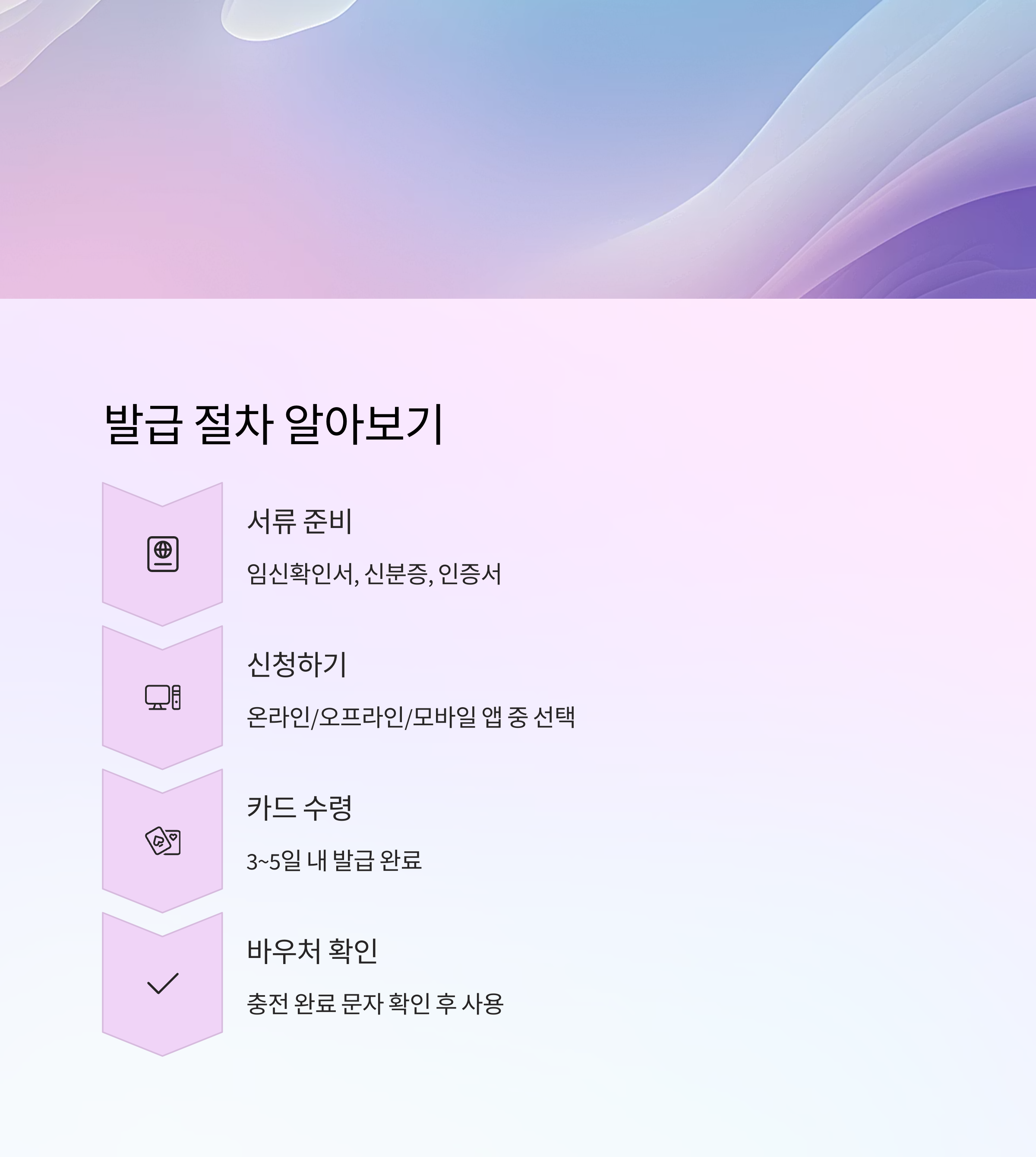 온라인 신청은 공인인증서 또는 공동인증서만 있으면 아주 간편해요. 임신 진단서를 사진으로 첨부하거나, 병원에서 자동 연동되면 서류 제출 없이 진행할 수도 있어요. 신청 완료 후 바우처 충전까지는 3일~5일 정도 걸려요.