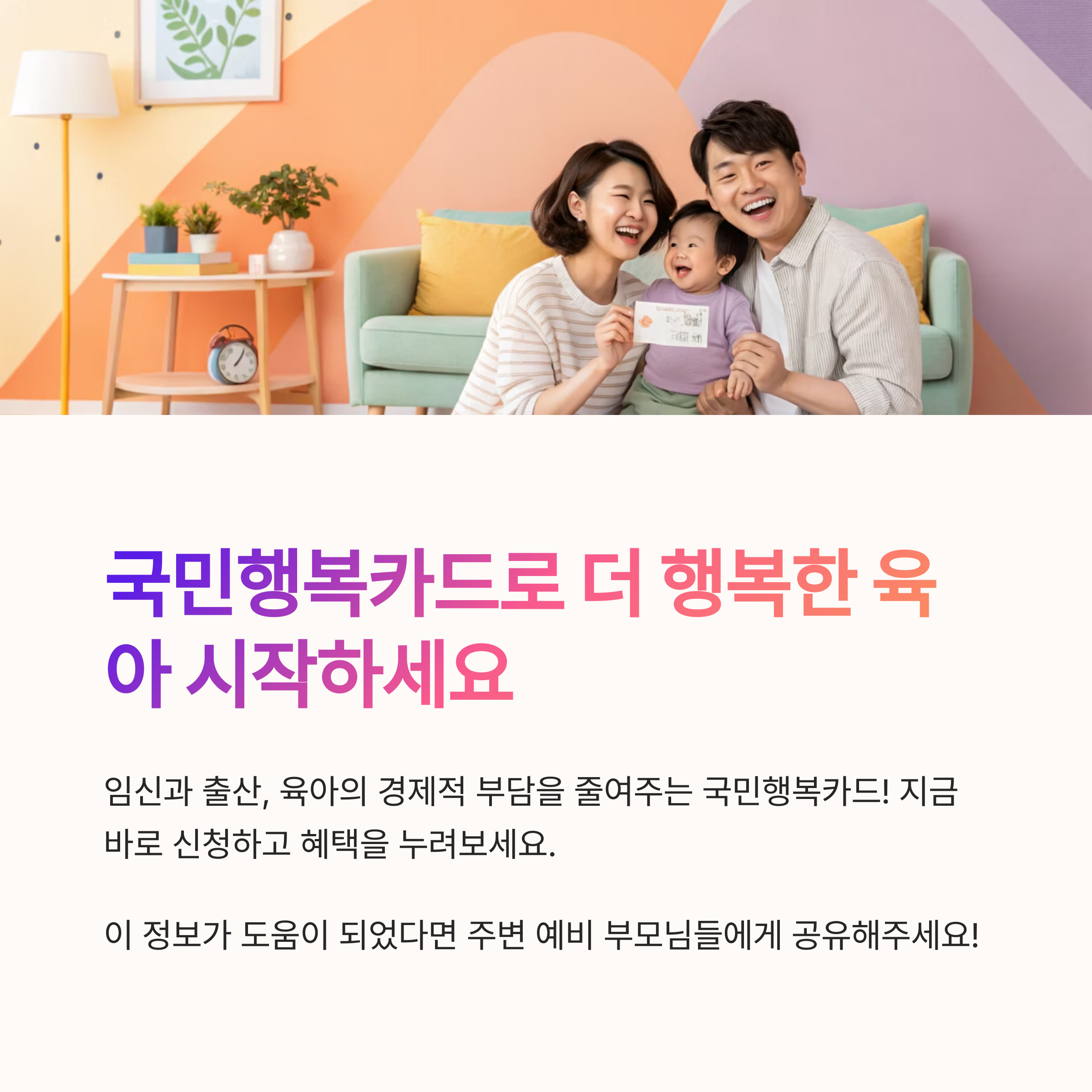 내가 생각했을 때 국민행복카드는 '복지+금융'이라는 복합적 성격을 띠는 아주 실용적인 카드 같아요. 특히 출산과 육아로 인해 지출이 많은 시기에 혜택이 집중되기 때문에, 자녀계획이 있는 가정이라면 꼭 알아두는 게 좋아요.