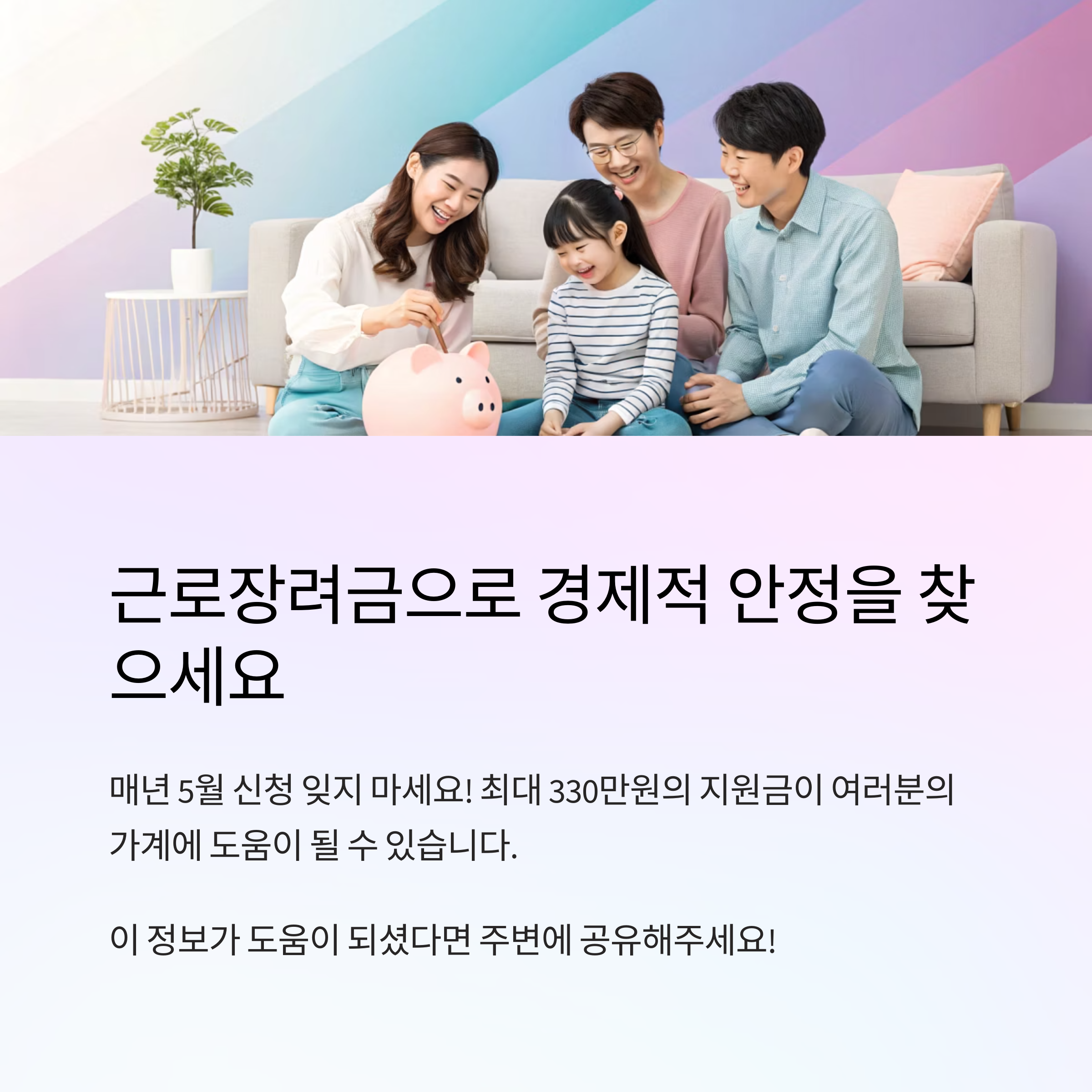 근로장려금은 저소득 근로자와 자영업자를 대상으로 정부가 경제적 안정을 지원하기 위해 마련한 제도예요. 일을 하고 있지만 소득이 낮아 생활이 어려운 가구를 돕는 것이 목적이에요. 소득 수준에 따라 최대 수백만 원의 장려금을 받을 수 있기 때문에 많은 국민들이 관심을 가지고 있답니다.