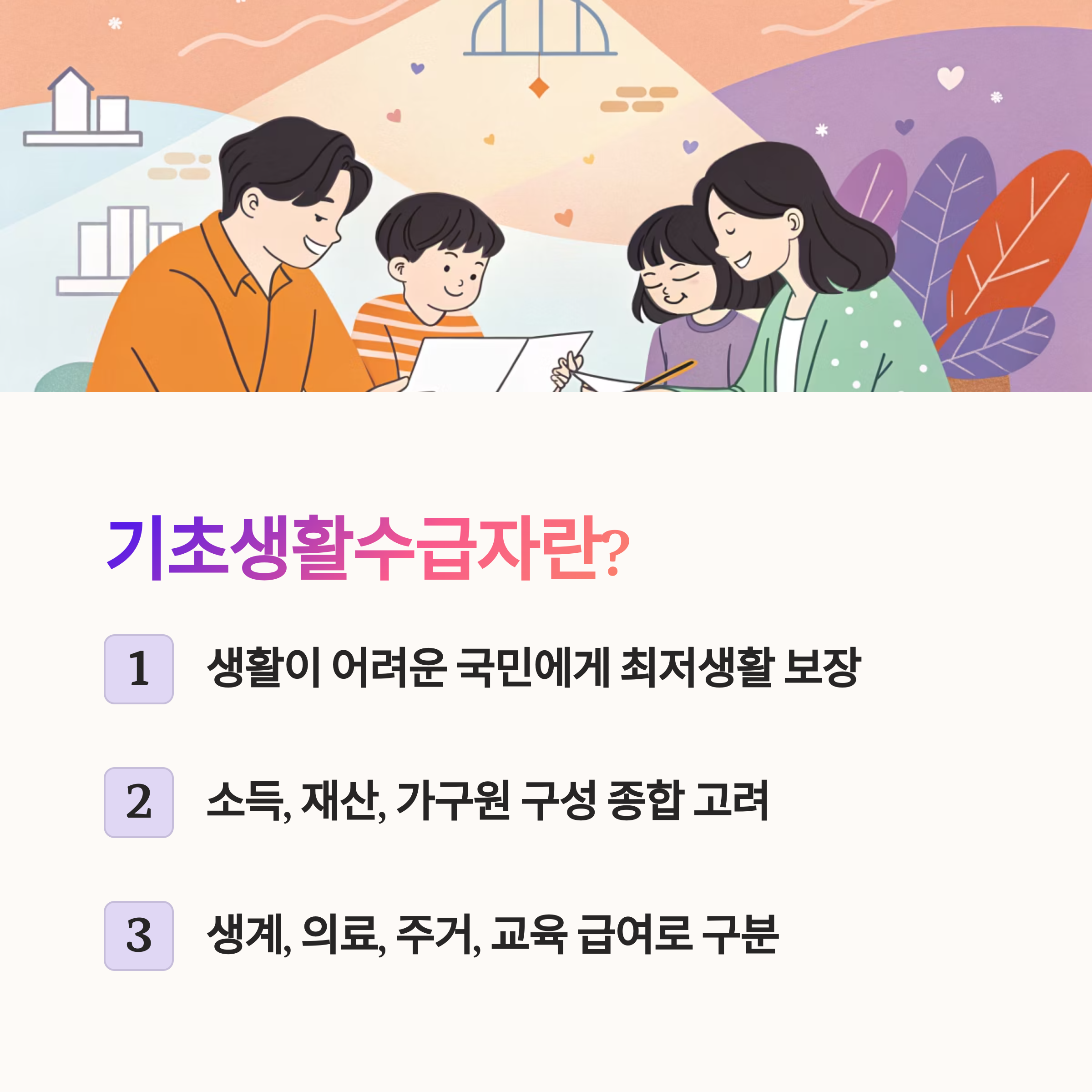 생활이 어려운 분들에게는 생계, 의료, 주거, 교육까지 폭넓은 혜택이 주어지는데요. 어떤 조건을 충족해야 하며, 어떤 도움을 받을 수 있는지 헷갈리는 경우도 많죠. 그래서 이번 글에서는 제가 직접 정리해 본 '기초생활수급자 기준 총정리'로 확실히 이해할 수 있도록 설명해 드릴게요. 😊