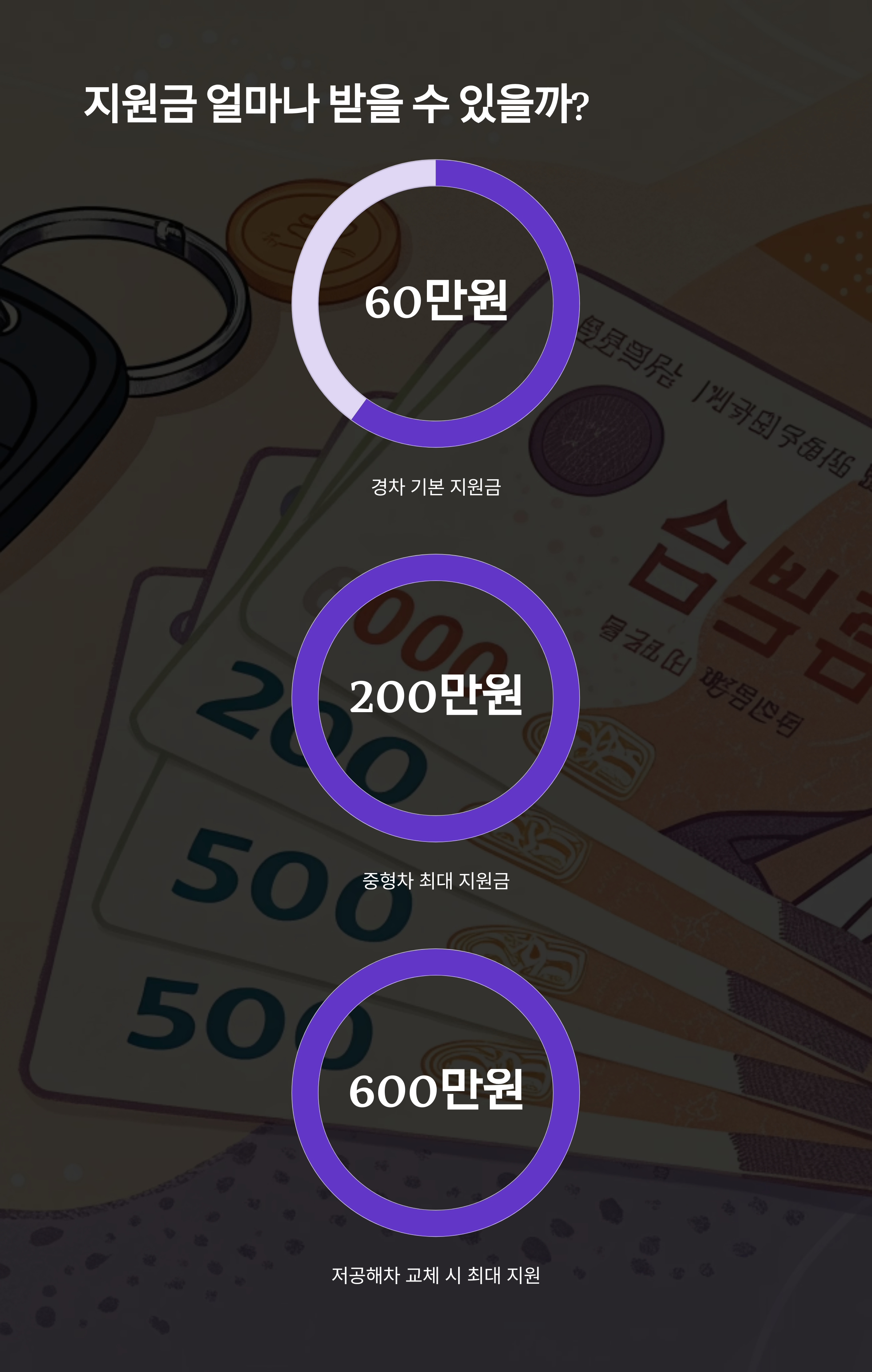 폐차 지원금을 신청하면 ‘얼마를 받을 수 있을까?’ 가장 궁금한 부분이 바로 이거예요. 지원금은 기본지원금과 추가지원금으로 나뉘며, 차량의 종류, 연식, 배출가스 등급, 폐차 방식(수출용 또는 완전폐차)에 따라 다르게 책정돼요.