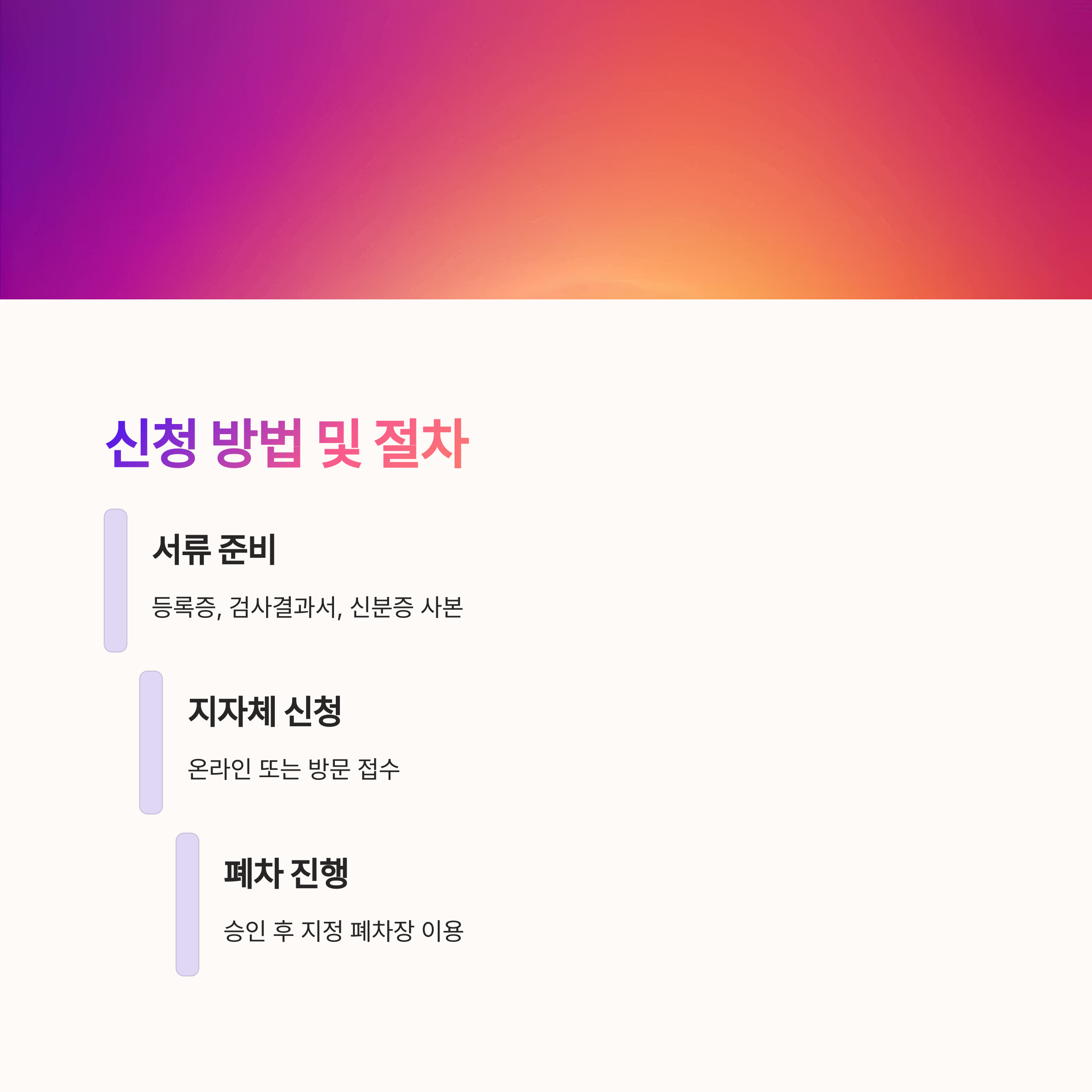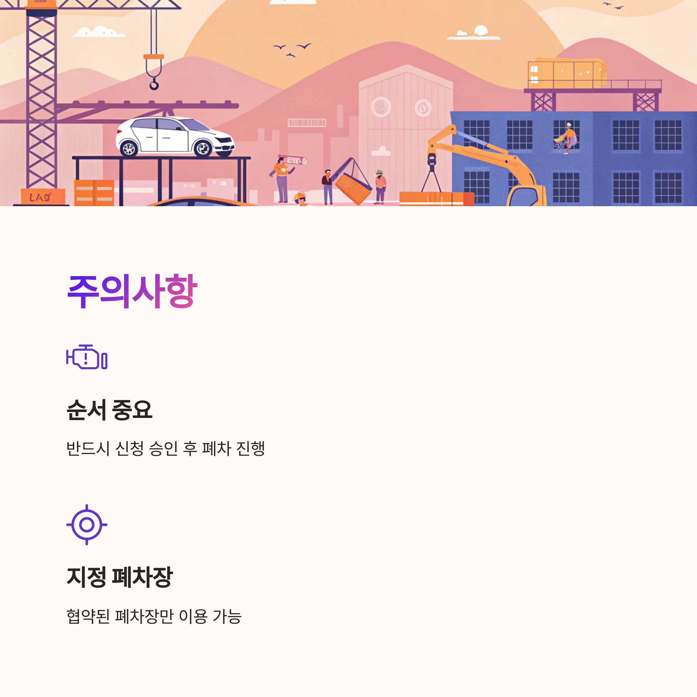 또한 폐차 진행 시에는 반드시 지자체와 협약된 지정 폐차장을 이용해야 해요. 일반 폐차장에 맡기면 지원금을 받을 수 없고, 차량 해체 과정에서 환경 오염도 발생할 수 있기 때문이에요.