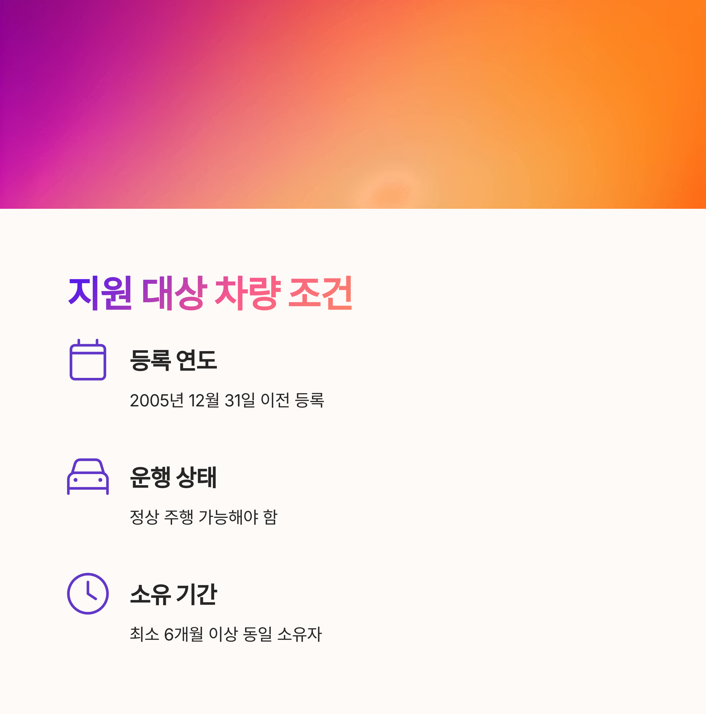 지원금을 받기 위해서는 일정 조건을 충족해야 하고, 차량뿐 아니라 소유자 요건도 세부적으로 나눠져 있어요. 복잡할 수 있지만, 한 번 이해해두면 큰 도움이 된답니다. 나의 차가 해당 조건에 맞는지, 언제 신청 가능한지 지금부터 꼼꼼하게 알아보는 시간 가져볼게요! 😊