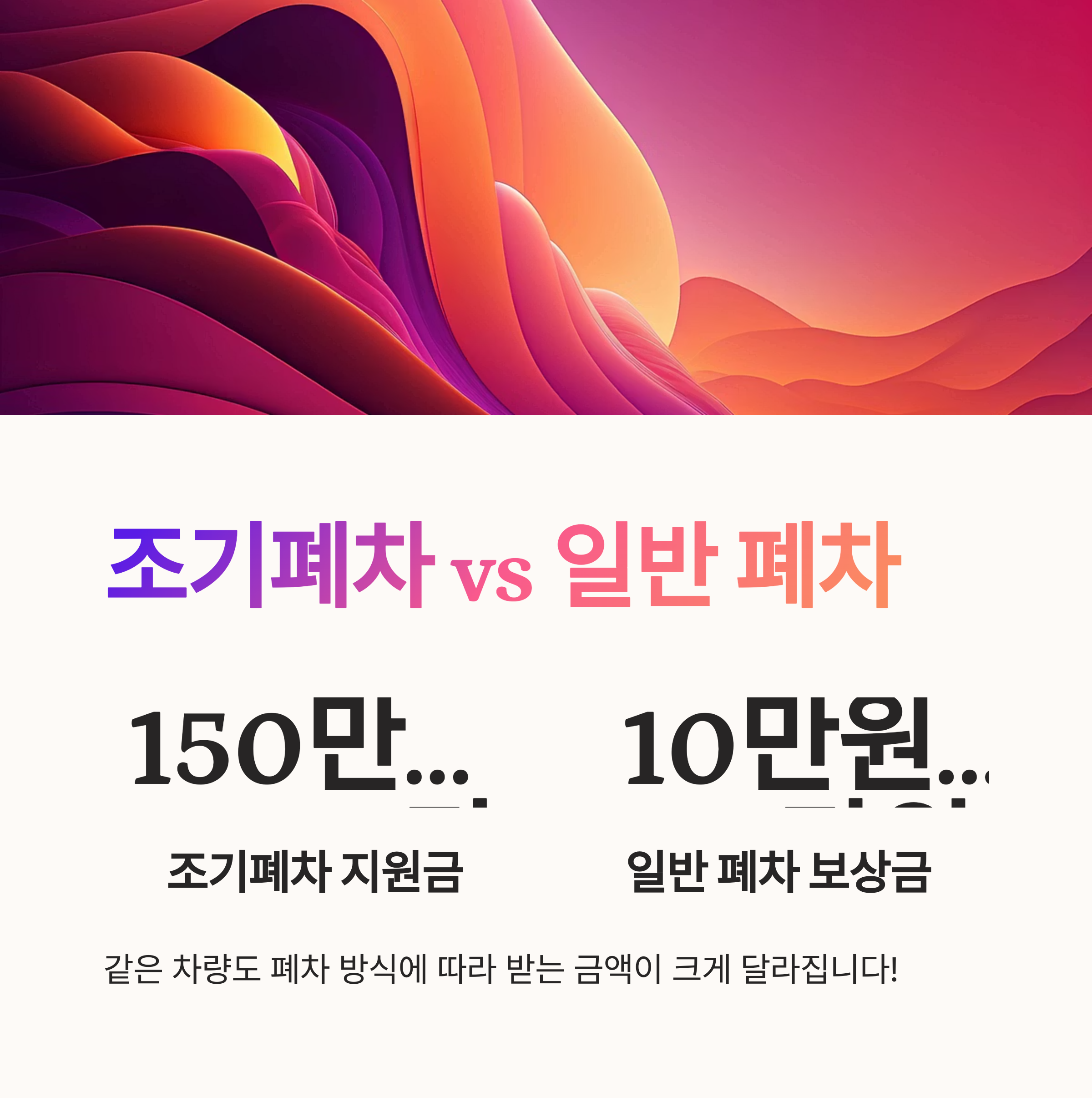이번 글에서는 조기폐차와 일반 폐차 지원금의 차이를 하나하나 파헤쳐 볼게요. 조기폐차 지원금이 왜 더 많은지, 내가 받을 수 있는 지원금은 어떤 건지 궁금하셨던 분들에게 확실한 정보가 될 거예요.