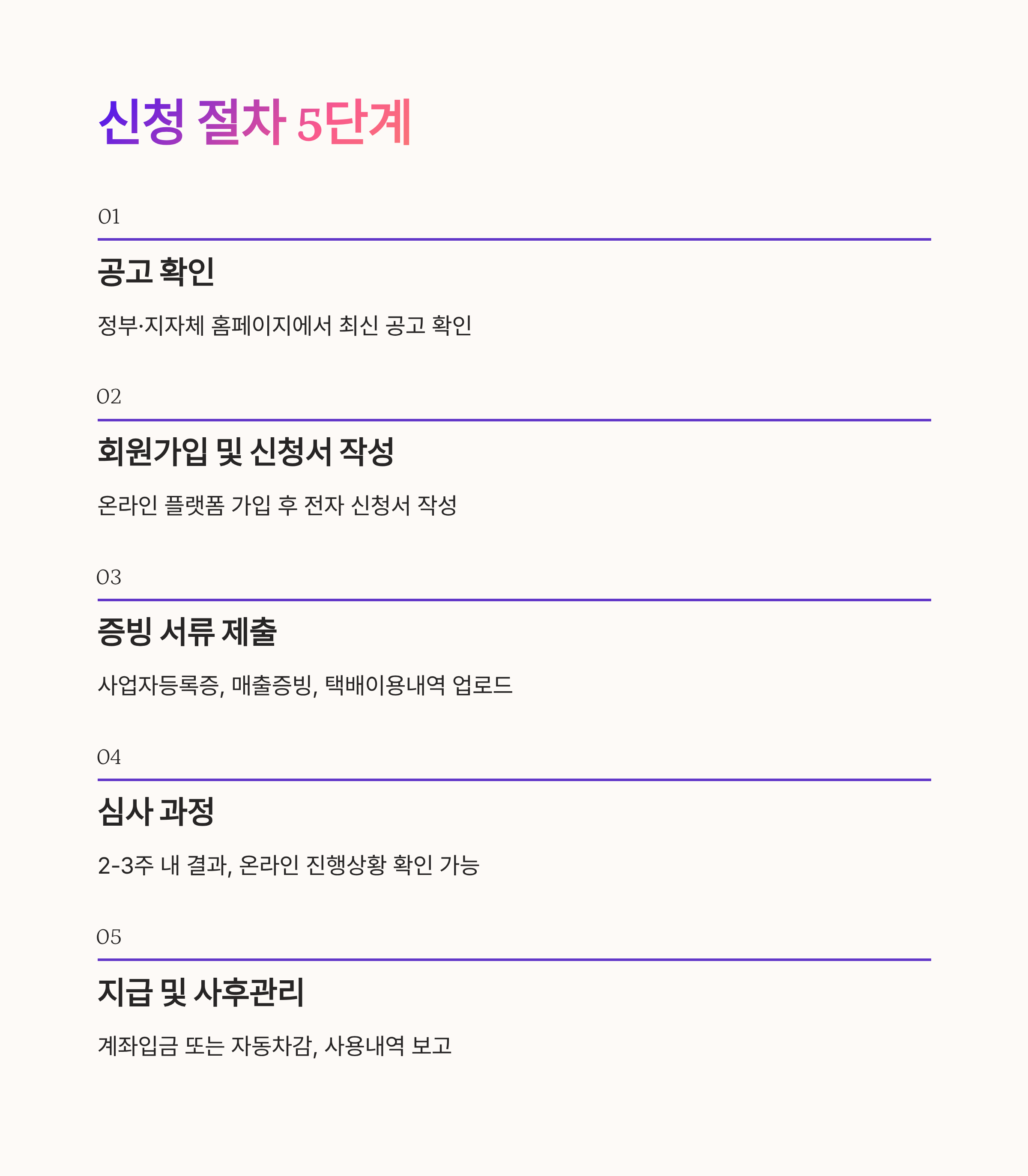 두 번째는 신청 절차 간소화예요. 예전에는 서류 준비와 심사 과정이 번거롭다는 불만이 많았는데, 2025년에는 간편 인증 시스템 도입으로 모바일에서도 몇 분 안에 신청이 가능해졌어요. 특히 AI 자동 검증 시스템이 도입되면서 매출 자료와 택배 내역 확인이 자동으로 이뤄져 신청자의 부담이 크게 줄었답니다. 📱