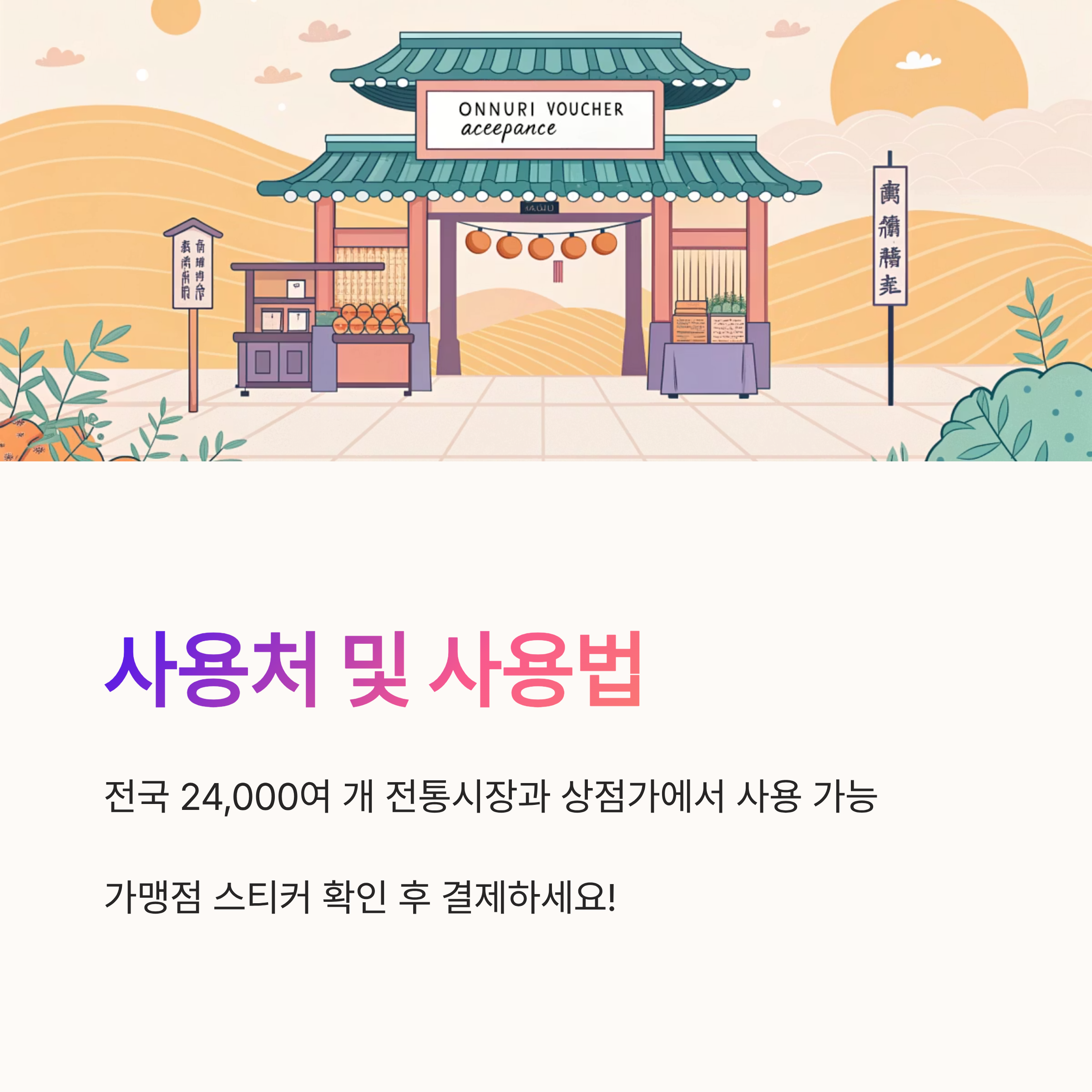 | 2단계 | 가맹점 확인 (전통시장, 가게 스티커) |