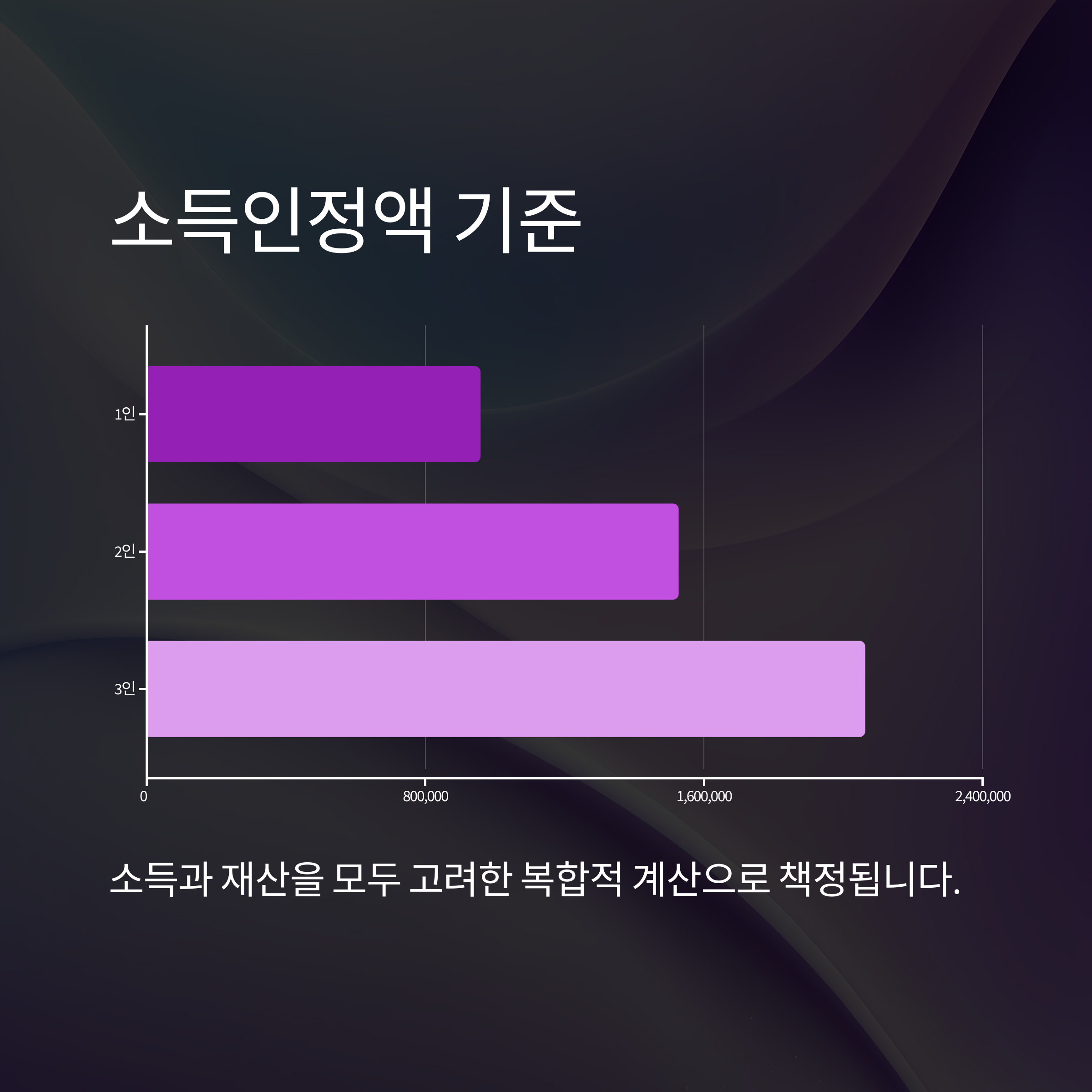 구체적으로 보면, '중위소득 47% 이하'인 경우가 기본 자격 요건이에요. 2025년 기준으로 1인 가구는 약 96만 원 이하, 2인 가구는 약 160만 원 이하 수준이에요. 이 기준은 매년 조정되기 때문에 꼭 최신 수치를 확인해야 해요.