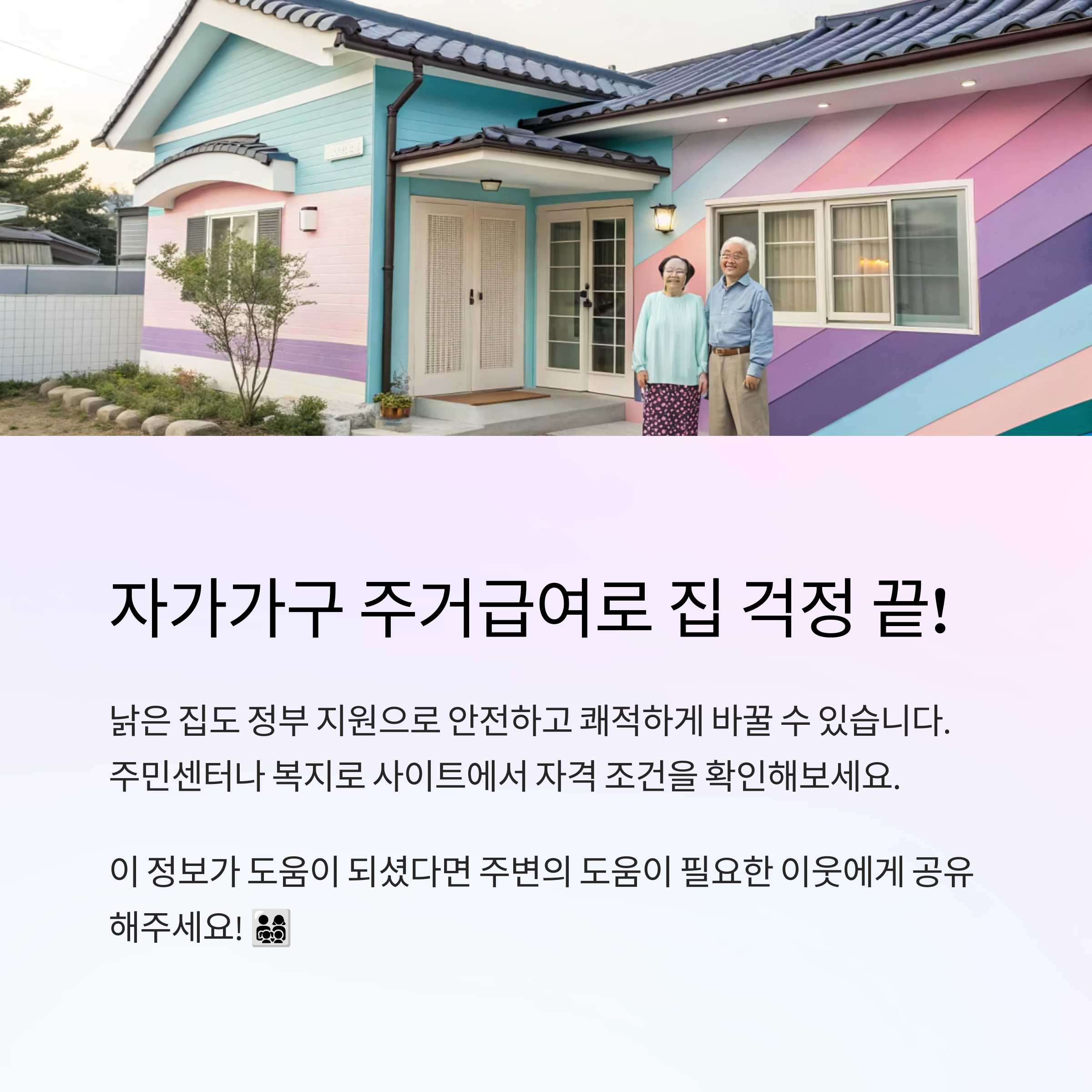 내가 생각했을 때, 이 제도는 특히 오래된 시골주택이나 노후된 도시 내 주택을 소유한 분들에게 정말 꼭 필요한 정책인 것 같아요. 단열이 안 되는 집, 화장실이 망가진 집도 수선 지원을 받을 수 있거든요.