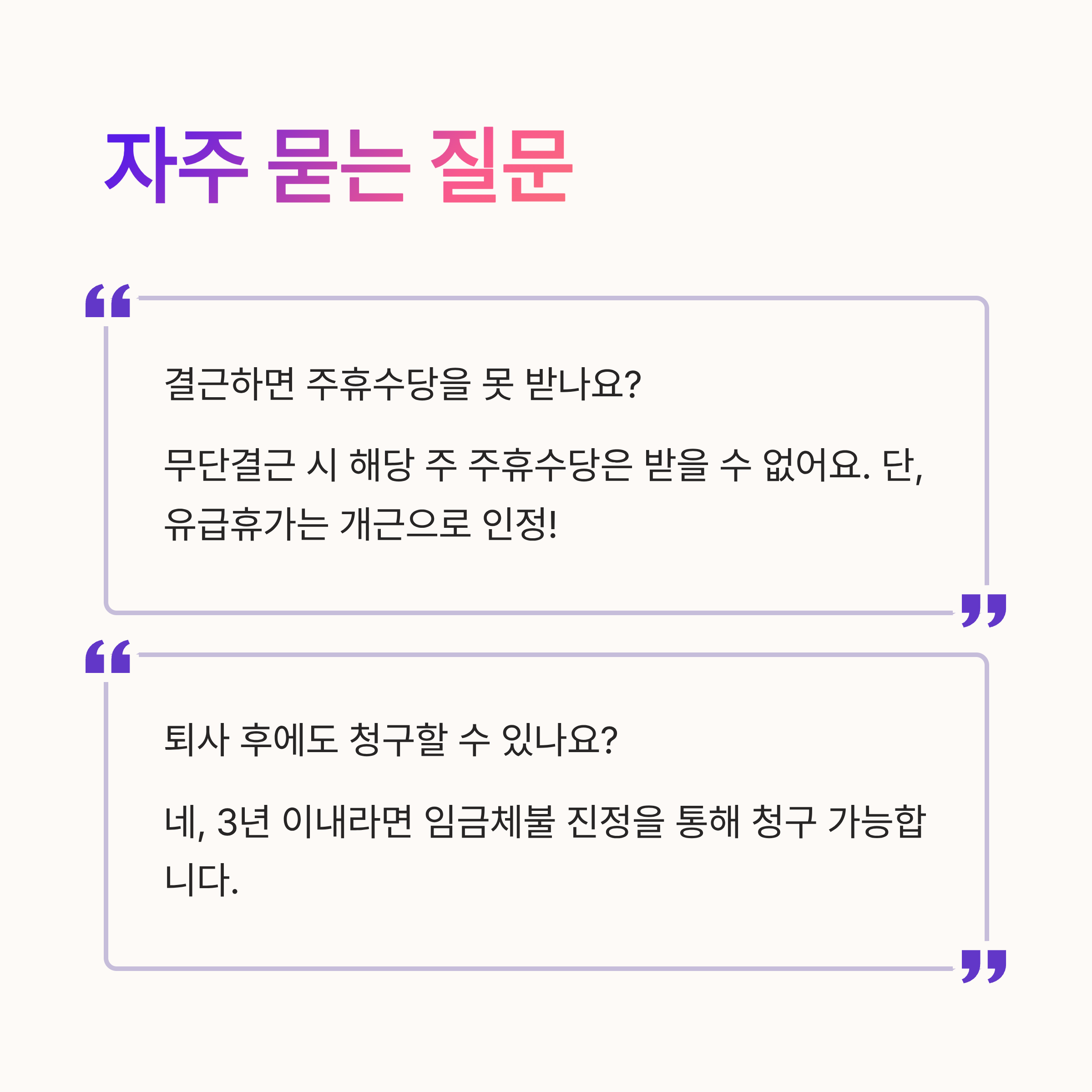 Q8. 주휴수당을 못 받았는데 이미 퇴사했어요. 청구할 수 있나요?