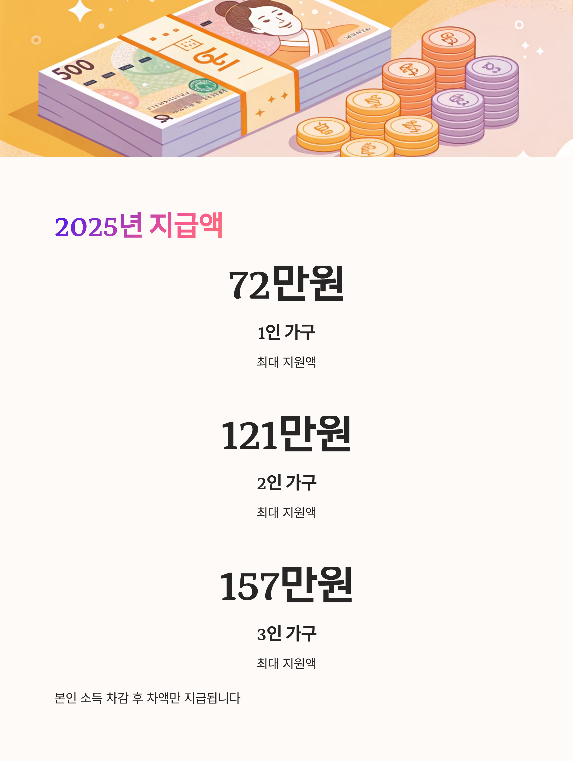 | 3인 | 157만원 | 소득 차감 후 지급 |