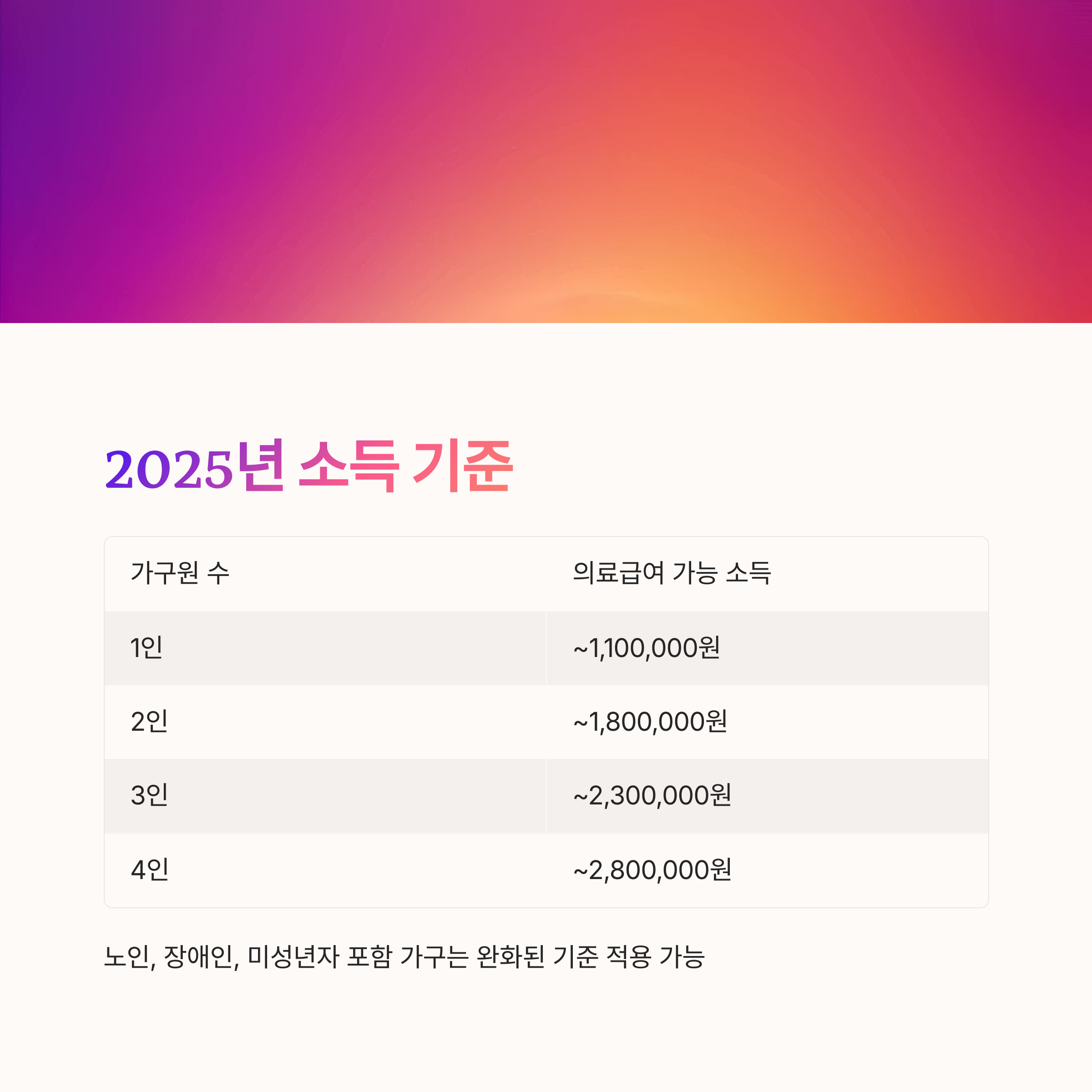 📊 2025년 차상위계층 소득기준표
