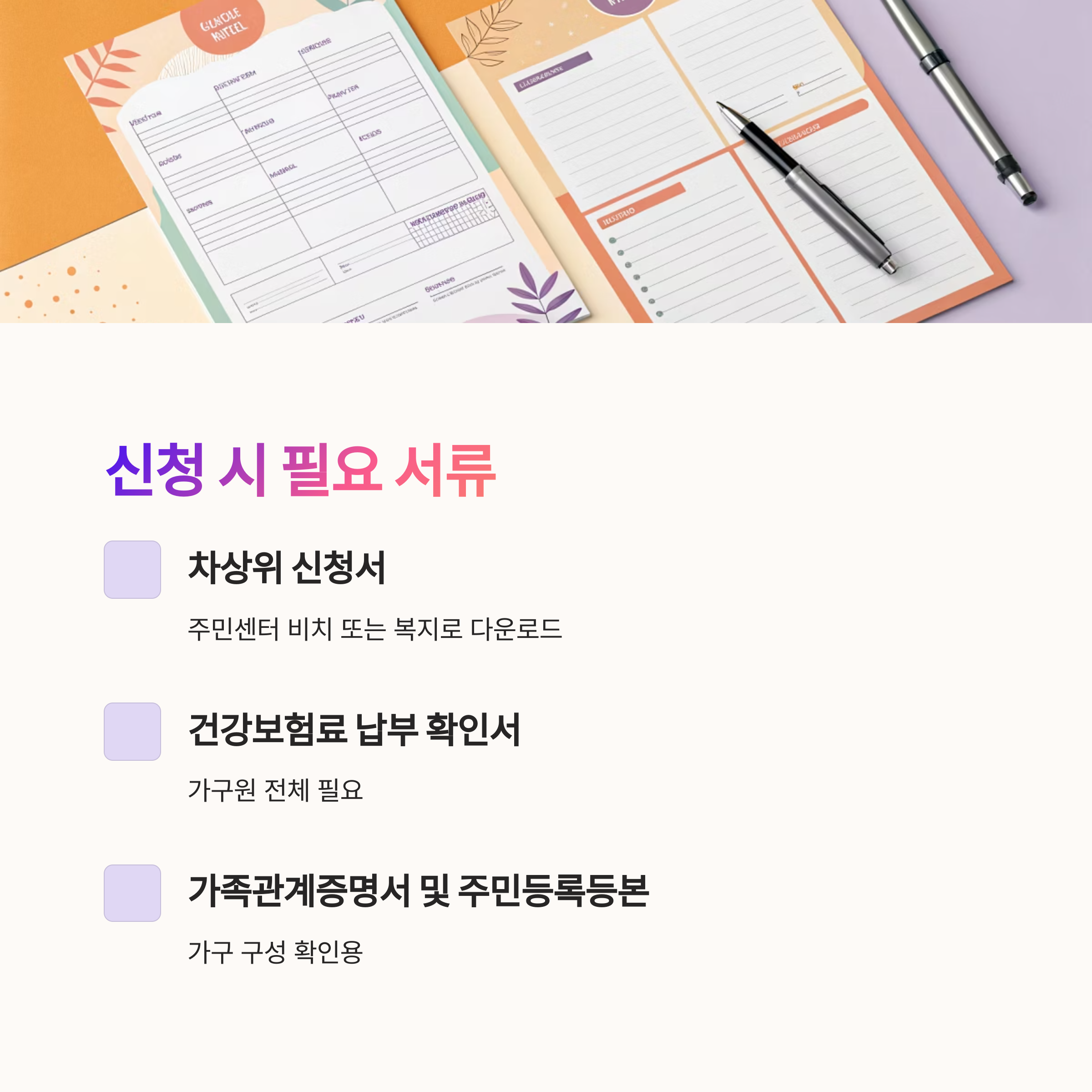 차상위계층 신청에서 가장 흔한 실수는 본인 기준이 아니라 '가구 전체' 기준을 생각하지 않는다는 거예요. 본인은 소득이 없다고 해도, 함께 사는 가족의 소득이 중위소득 50%를 넘으면 신청이 거절될 수 있어요.