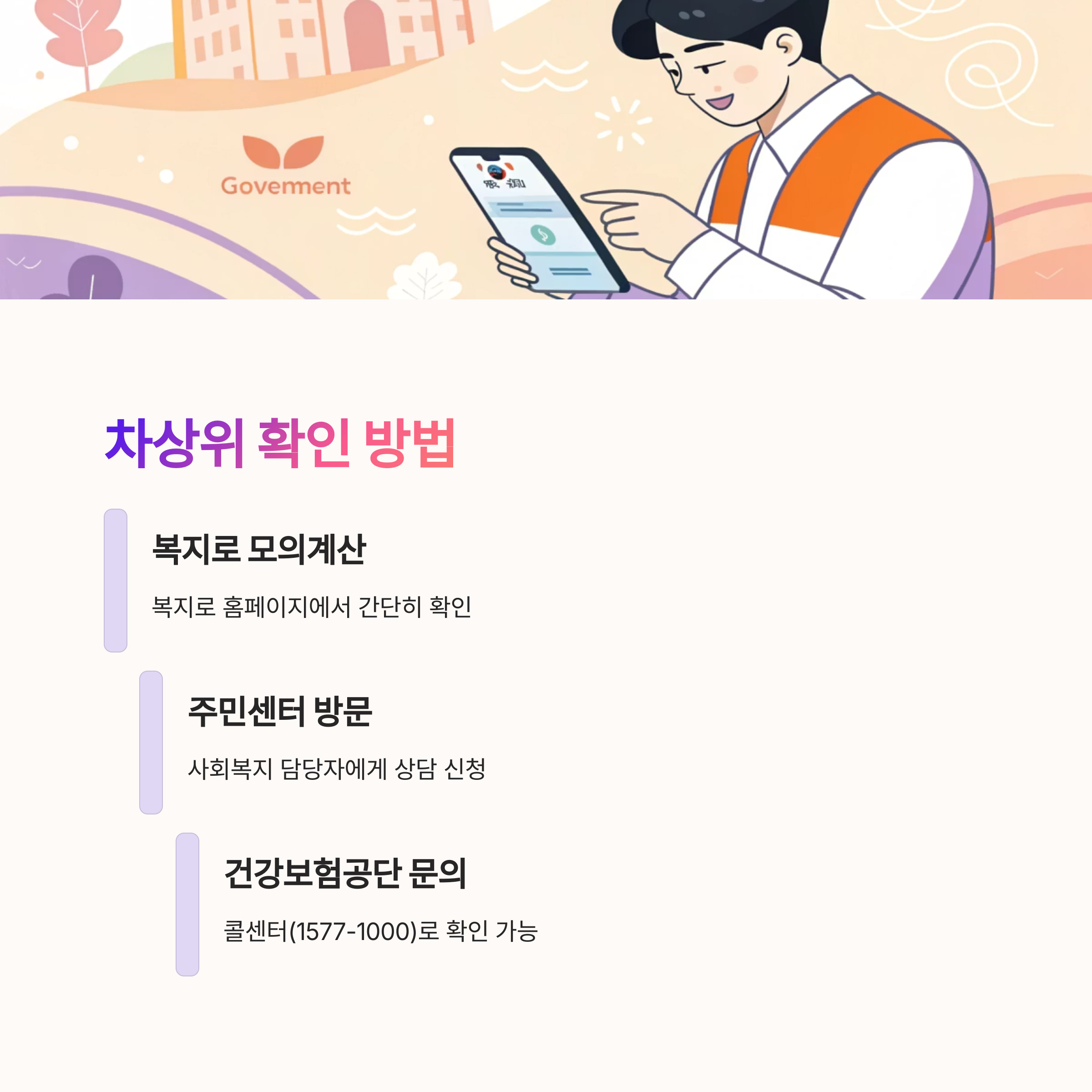 차상위계층이라는 말 자체가 다소 생소할 수 있지만, '차상위 본인부담경감대상자', '차상위 자활대상자', '차상위 장애수당 대상자' 등 다양한 세부 유형이 있어요. 제각기 기준이 다르기 때문에 반드시 본인의 상황에 맞는 항목으로 확인해봐야 해요.