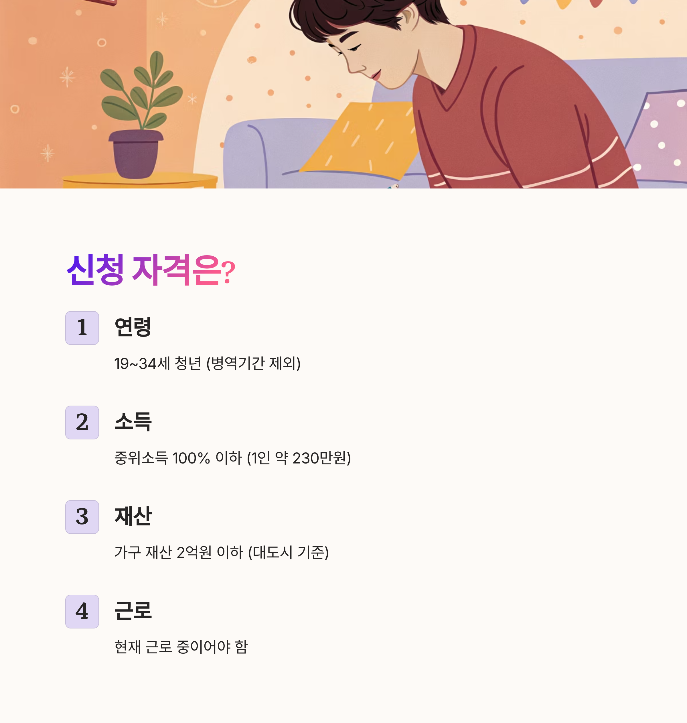 단순히 나이와 소득만 맞춘다고 해서 신청이 가능한 게 아니고, 실제로 신청 전 ‘자격 조회 서비스’를 통해 본인의 신청 가능 여부를 반드시 확인해야 해요. 신청 시 허위 정보 입력은 불이익이 있을 수 있어요.