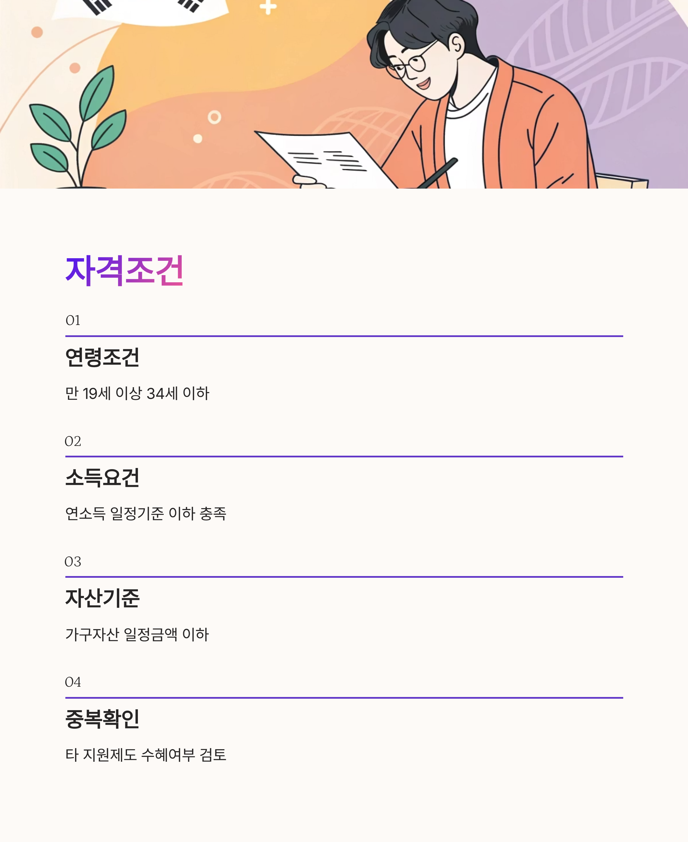 자격 조건은 단순히 연령과 소득뿐 아니라 기존 금융자산이나 타 지원제도 수혜 여부에 따라 달라질 수 있어요. 일부 은행에서는 부채 규모나 신용도도 심사 요소로 삼는 경우가 있기 때문에 사전에 확인하는 게 안전해요.
