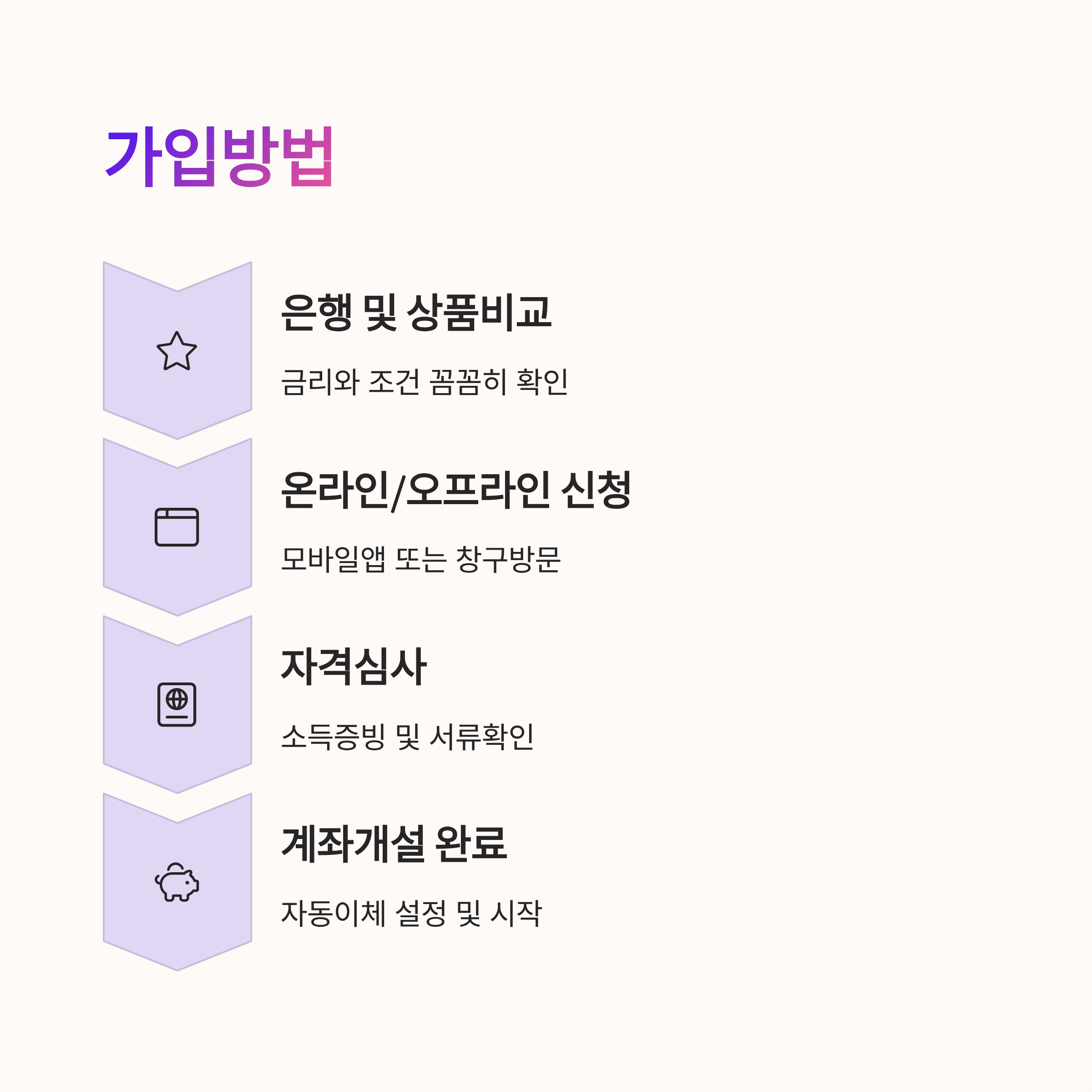 은행 앱을 통한 간편 신청 서비스가 점차 확대되고 있어서 모바일 가입도 많이 활용되고 있어요. 몇 분 안에 신청이 완료되고, 서류 확인 과정은 자동화되어 편리하게 진행되죠. 다만 처음 가입할 때는 꼭 안내문을 꼼꼼히 읽고 진행하는 것이 필요해요.
