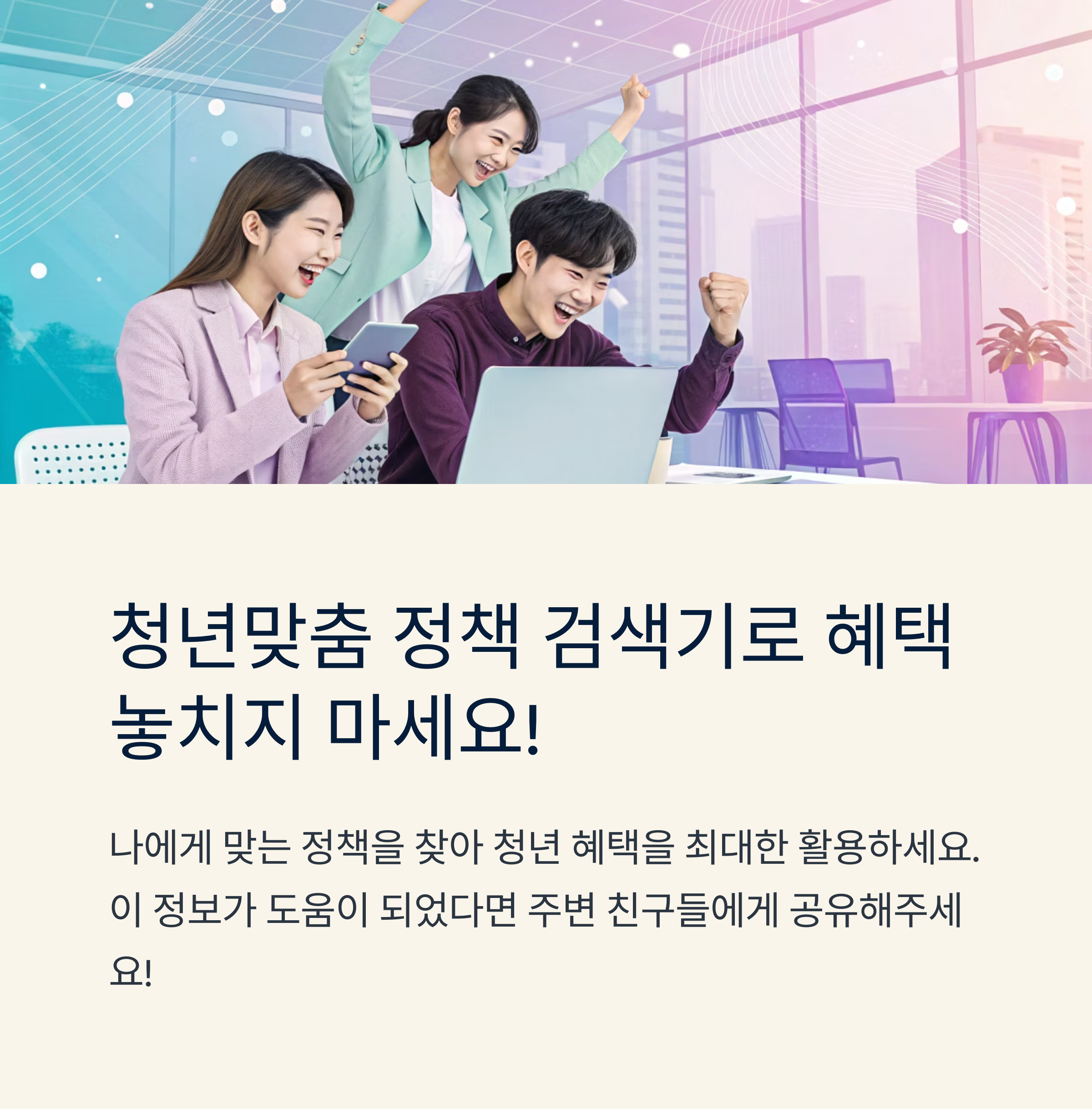 청년 정책을 한눈에 확인하고, 내 상황에 꼭 맞는 정보를 얻을 수 있는 도구가 있다면 어떨까요? 바로 "청년맞춤 정책 검색기"가 그 주인공이에요! 😊