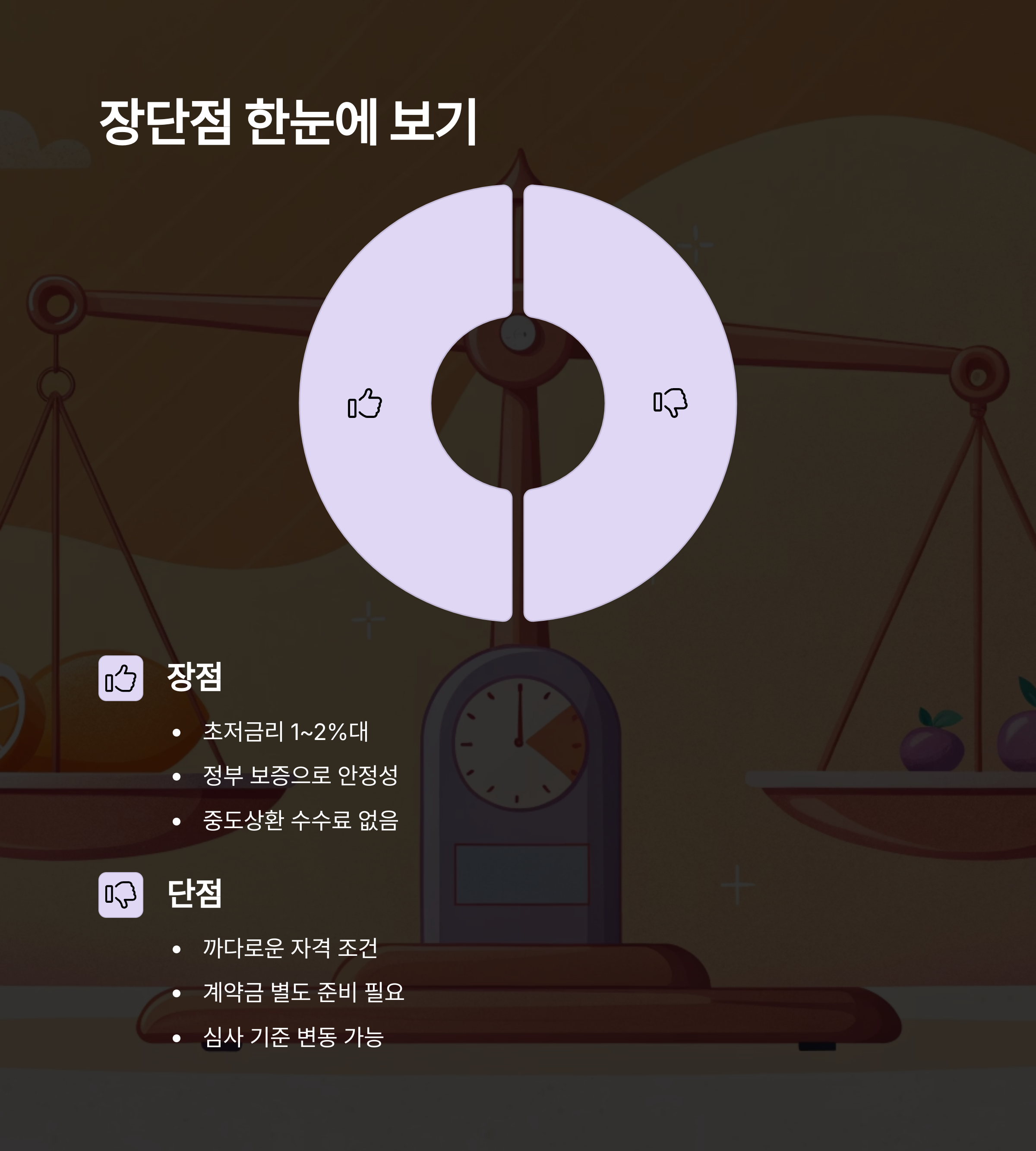 하지만 단점도 있어요. 대출이니까 당연히 '상환'을 해야 하고, 조건이 까다롭다는 점이에요. 특히 자산, 소득 기준, 연령 조건을 모두 만족해야 하다 보니 신청 자체가 어려운 경우도 있어요. 그리고 계약금이나 중도금은 본인이 마련해야 하는 경우도 많답니다.
