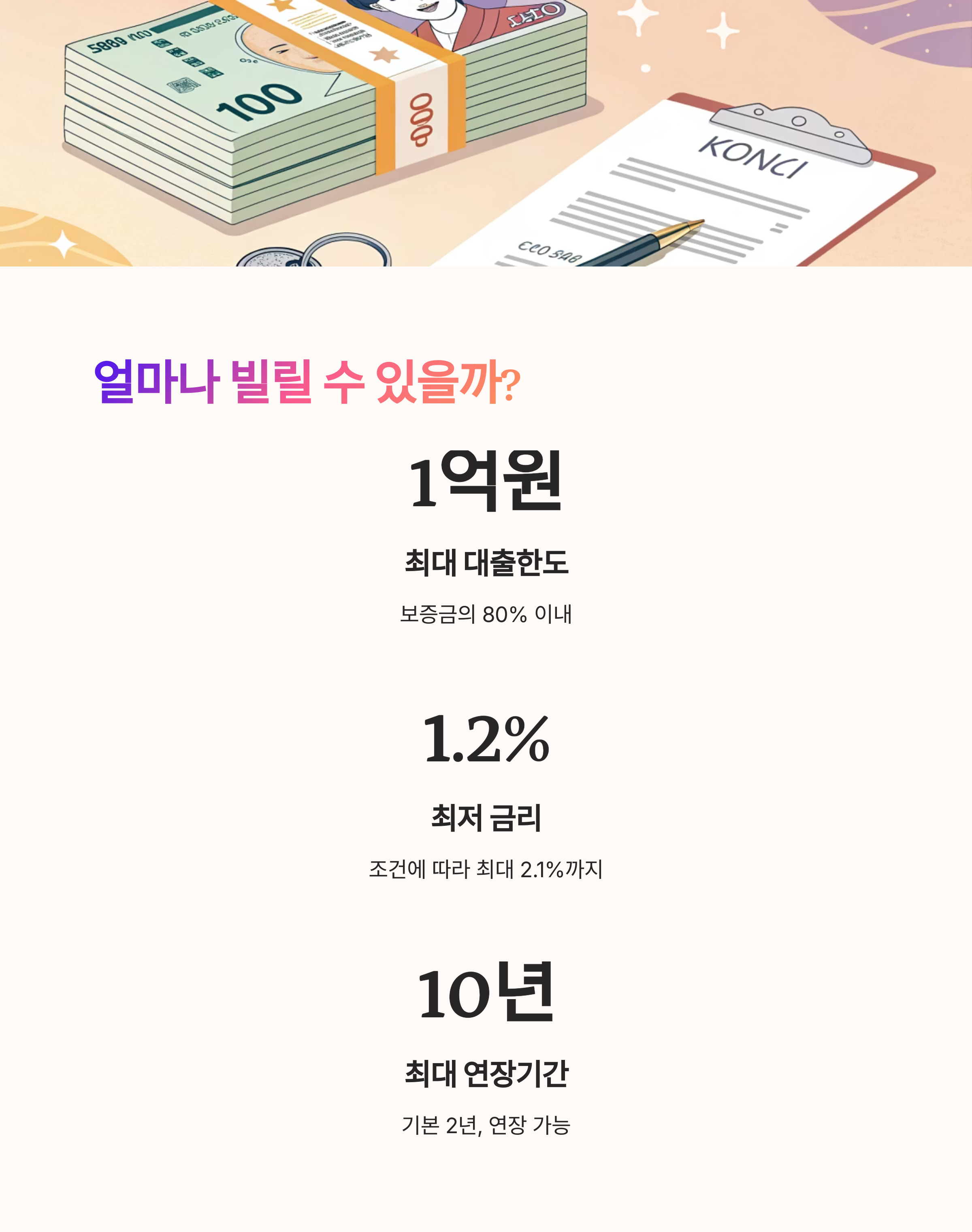 또한 대출기간은 기본 2년으로 설정되며, 최대 10년까지 연장이 가능해요. 중간에 재계약을 하거나 보증 연장을 통해 대출 유지도 가능하니 너무 걱정하지 않아도 돼요.