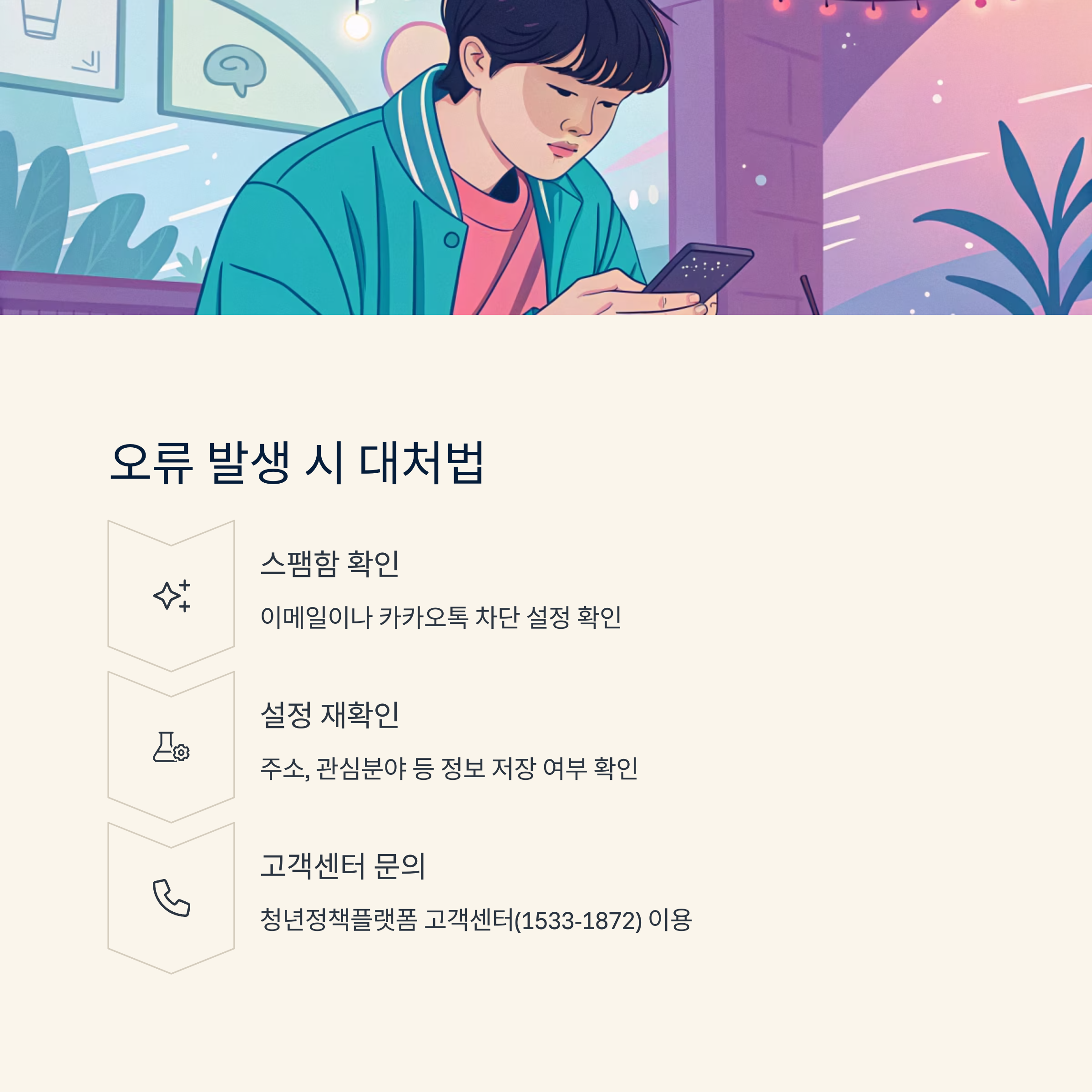 셋째, 사이트 자체 오류일 수 있어요. 이럴 땐 청년정책플랫폼 고객센터(☎ 1533-1872)에 문의하면 친절하게 도와줘요.