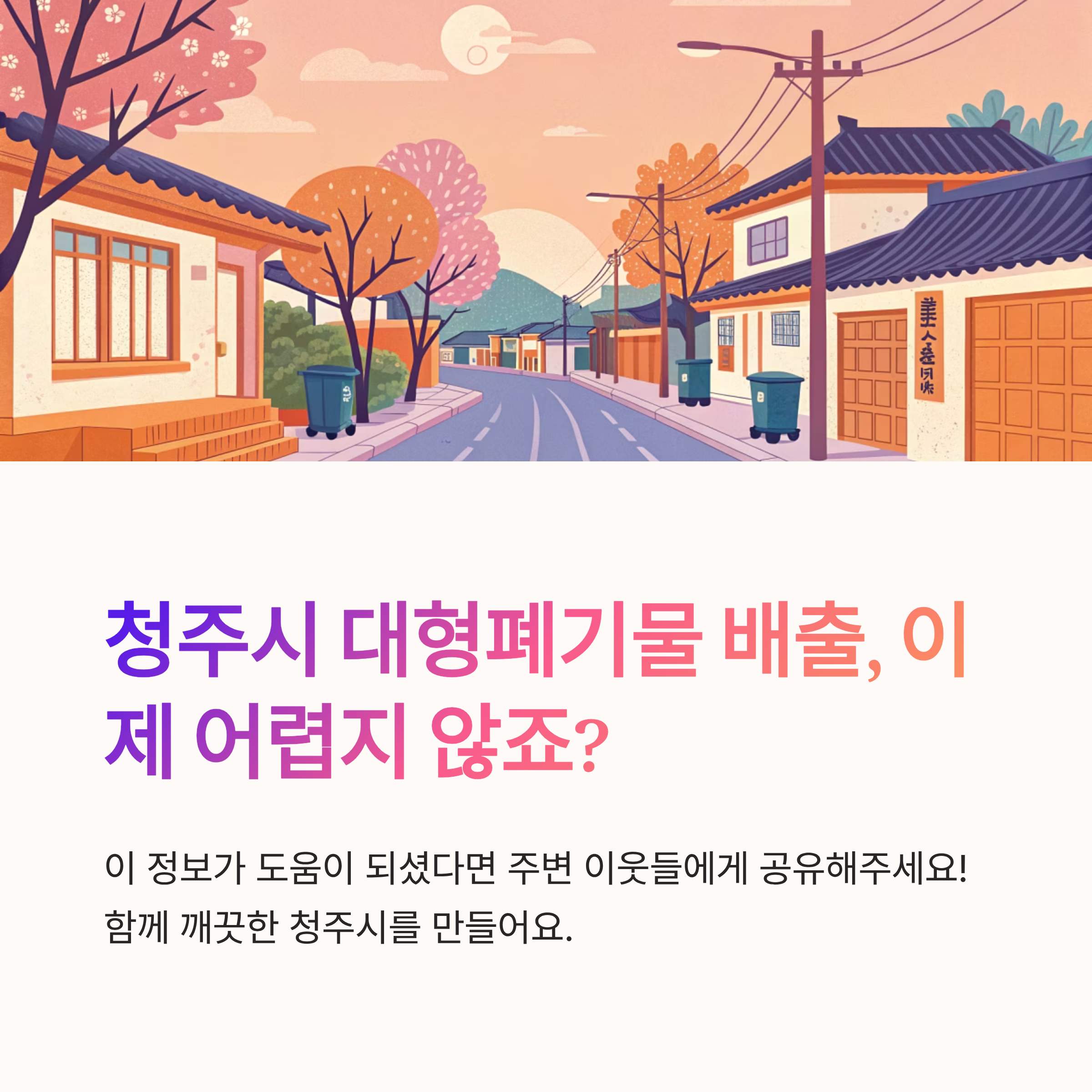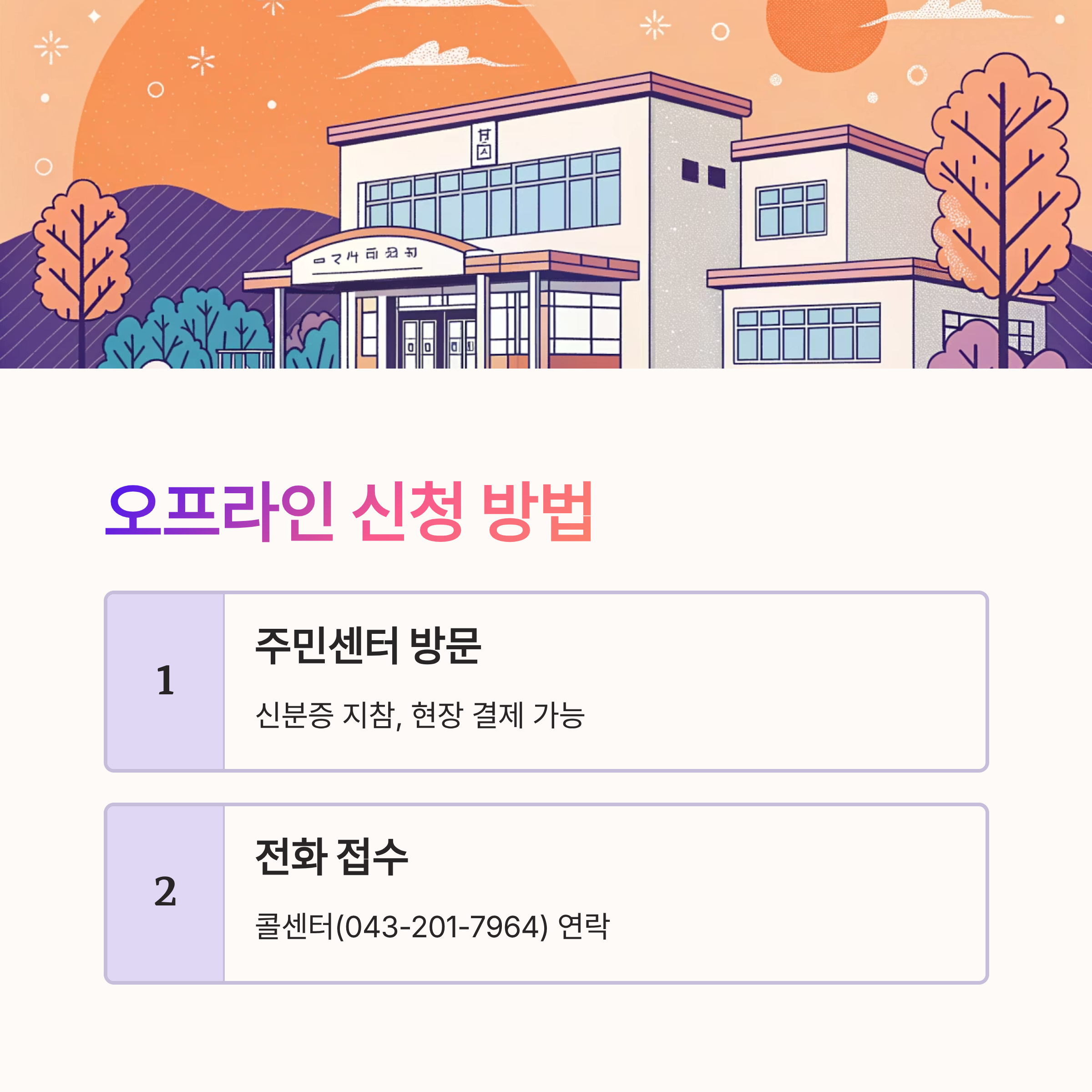 ※ 위 내용은 2025년 기준 청주시 공식 정보 및 공공 시스템에 기반해 작성되었으며, 정책 변경 시 일부 정보는 다를 수 있어요. 정확한 정보는 청주시청 홈페이지 또는 주민센터를 통해 확인해 주세요.