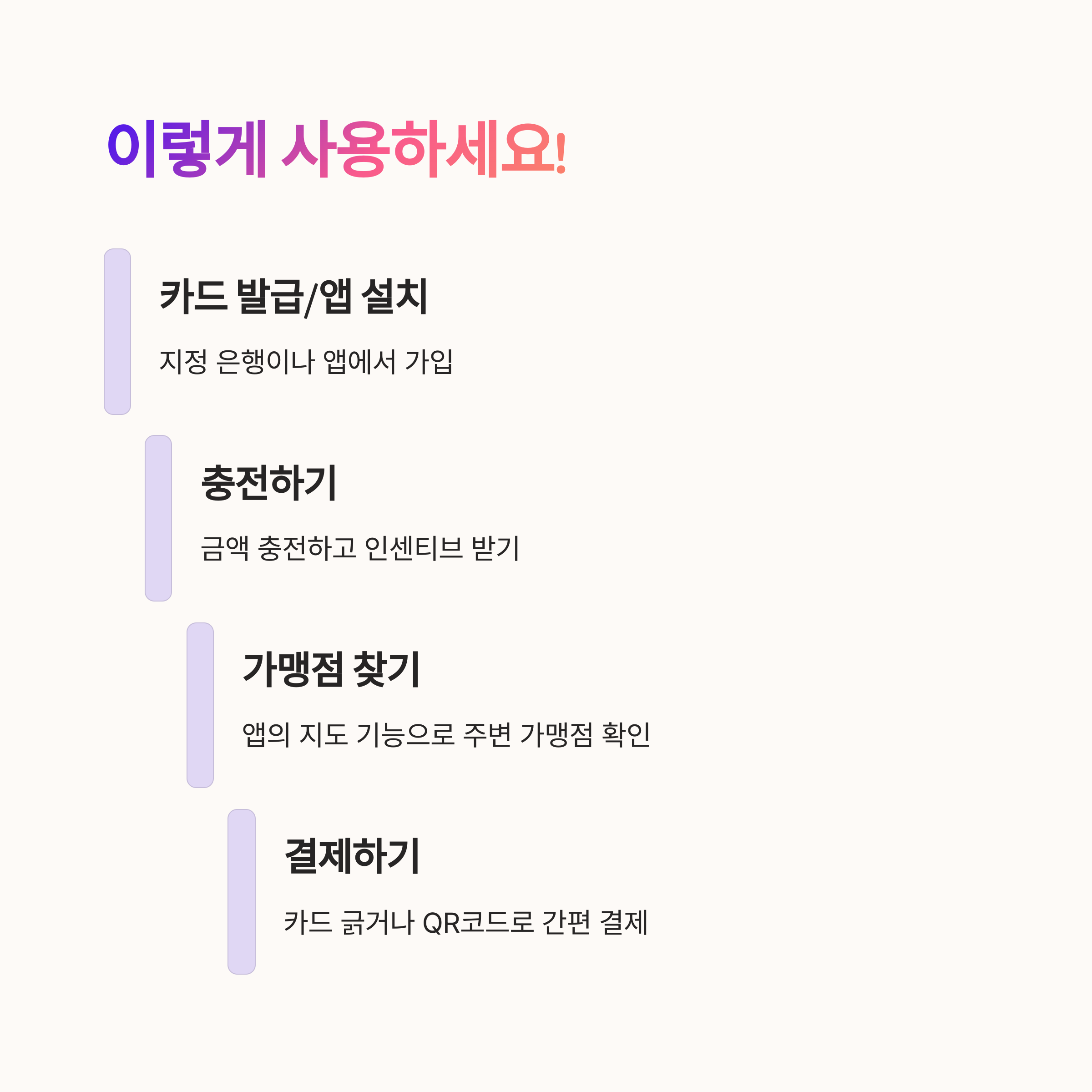 앱을 통해 프로모션이나 이벤트 알림도 제공돼요. 특정 업종 할인, 가맹점 경품 행사, 충전 이벤트 등 실속 있는 정보가 많으니 알림 설정 꼭 해두세요!
