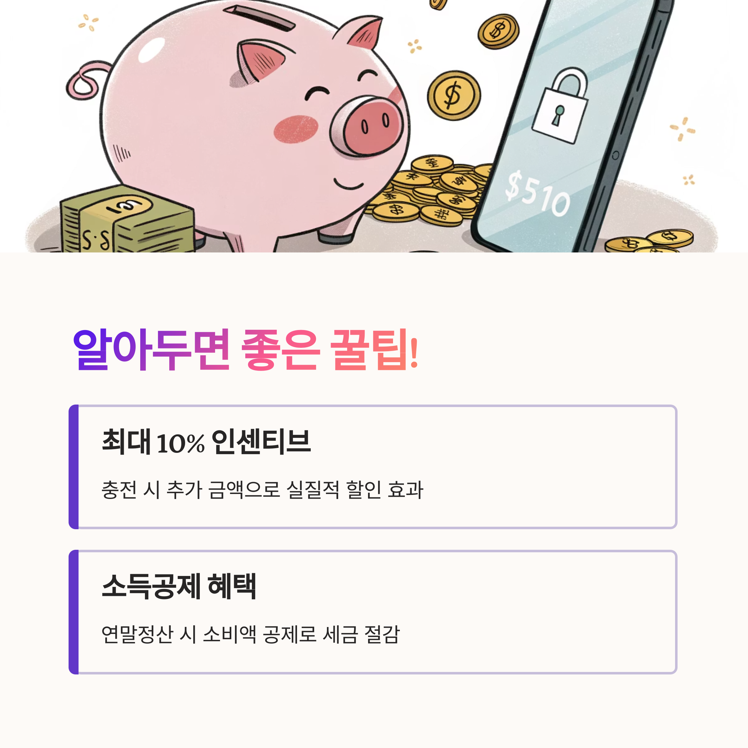 또한 소비액의 일정 금액은 연말정산 시 소득공제 혜택도 받을 수 있어서 세금 절감에도 유리하답니다. 이건 몰랐던 분들도 많을 텐데 꼭 챙기셔야 해요!