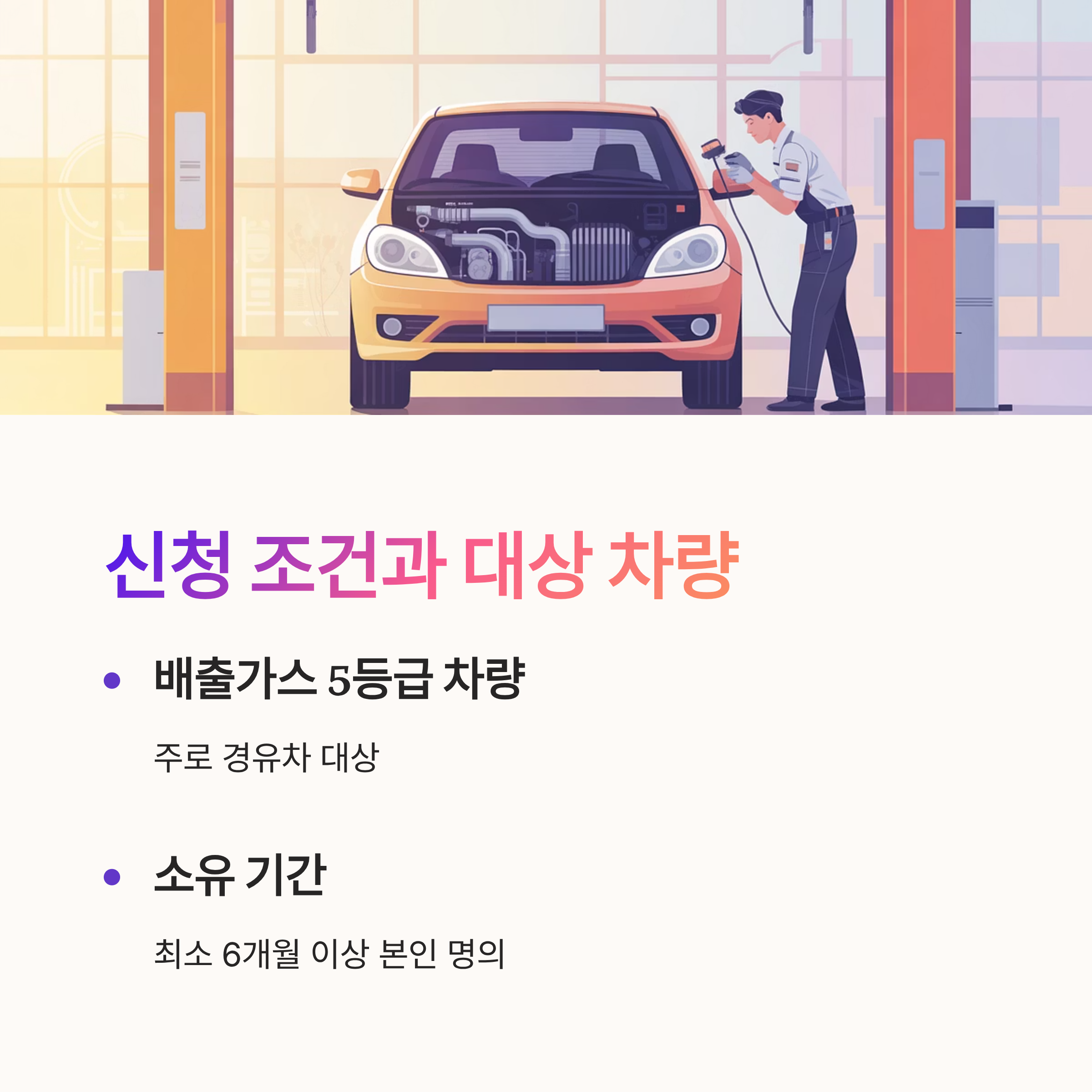 2025년 현재, 충북 지역 주민 중 노후 경유차를 보유한 사람이라면 누구나 신청할 수 있는데요. 단순히 폐차만 한다고 모두 보조금을 받을 수 있는 건 아니라서 정확한 조건과 절차를 꼼꼼하게 확인하는 것이 중요해요.