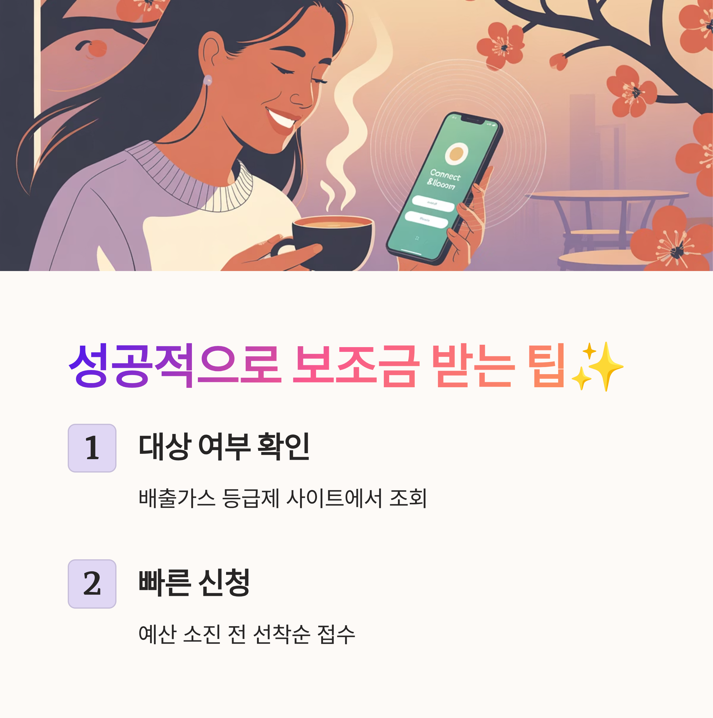 이 제도를 통해 환경도 지키고, 경제적인 혜택도 얻을 수 있다 보니 해마다 접수 경쟁이 매우 치열하답니다. 빠르게 신청하지 않으면 예산 소진으로 기회를 놓칠 수 있어요.