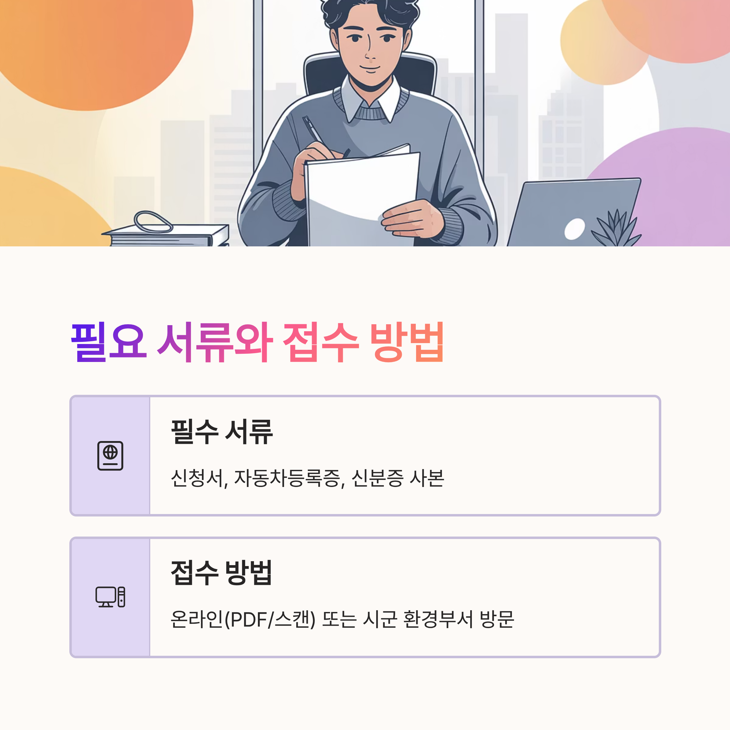 온라인 접수를 할 경우 PDF 형식이나 스캔본으로 업로드하면 되고, 오프라인은 시군 환경부서에 직접 방문해서 서류를 제출할 수도 있어요. 하지만 요즘은 온라인 신청이 훨씬 간편하답니다.