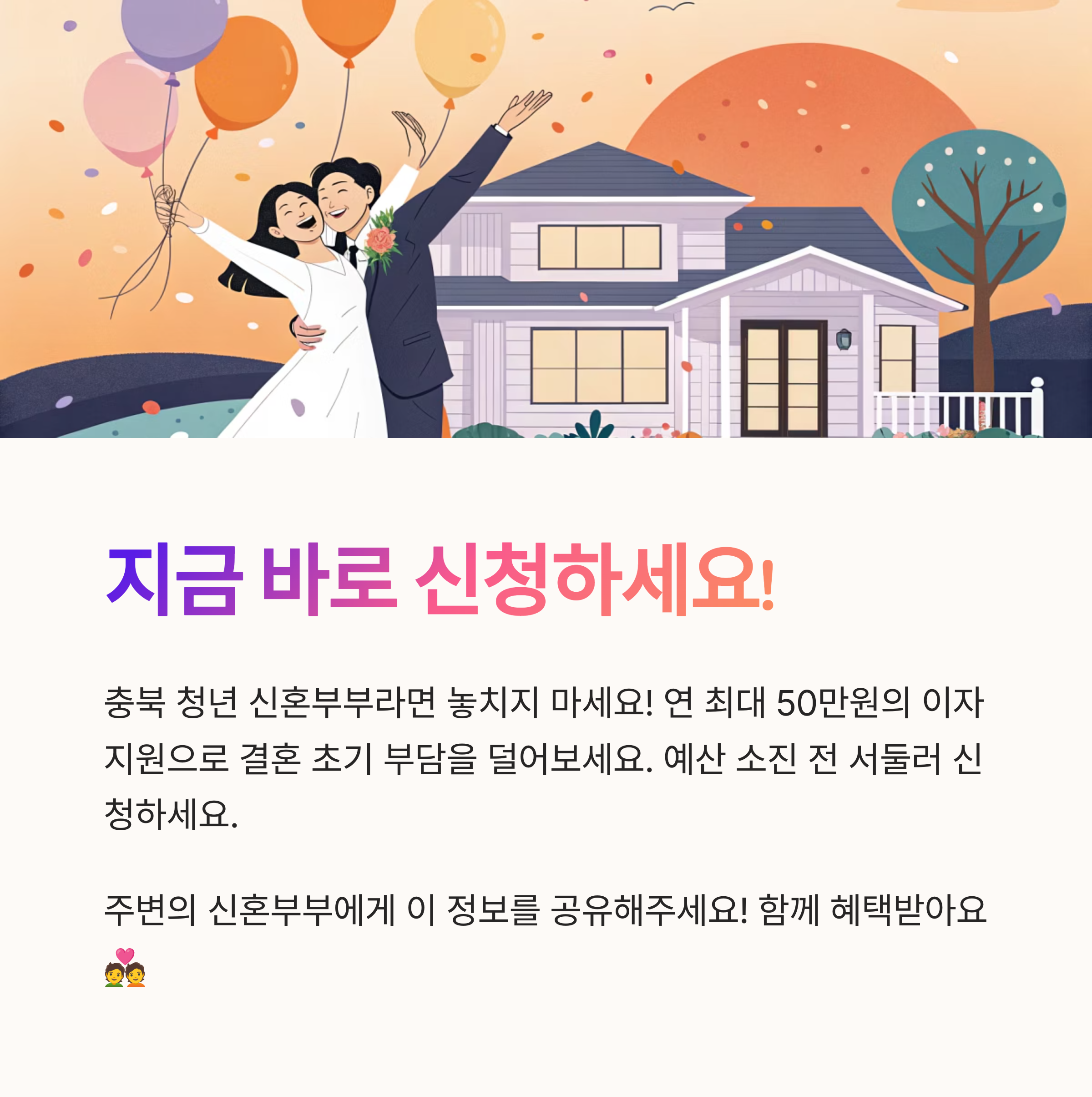 충청북도에서 결혼을 준비하거나 막 결혼한 청년들에게 반가운 소식이에요! 💑