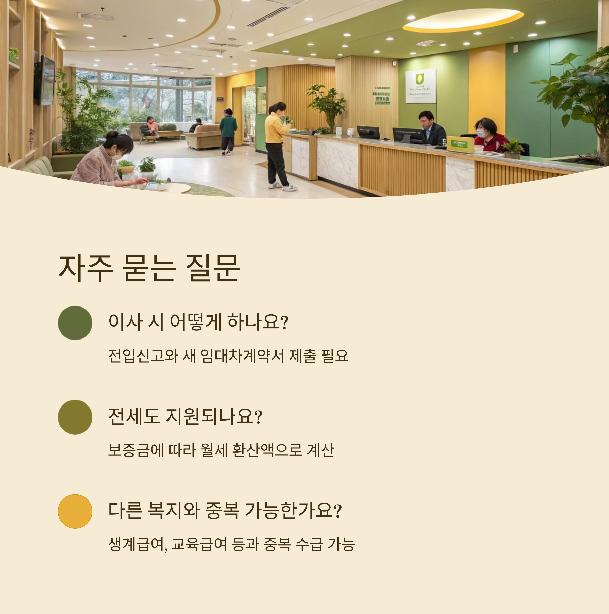 A6. 이사한 경우에도 계속 수급 가능해요. 단, 전입신고와 함께 새 임대차계약서를 제출해야 급여가 중단되지 않아요. 이사 전 주민센터에 반드시 알리는 것이 좋아요.
